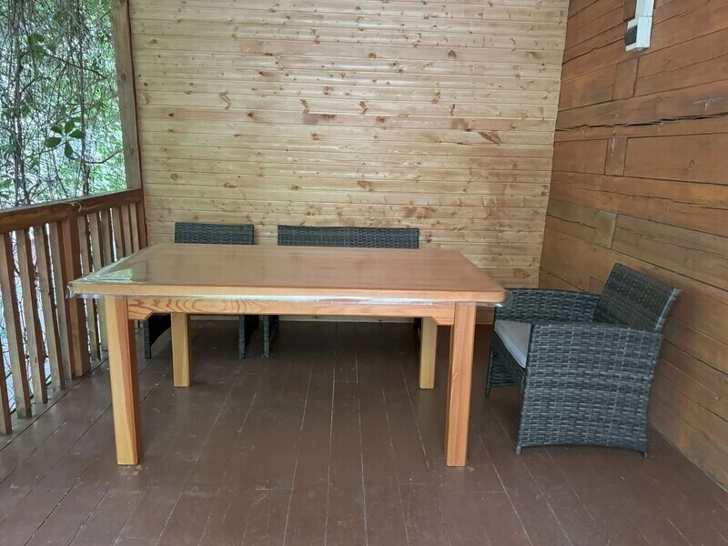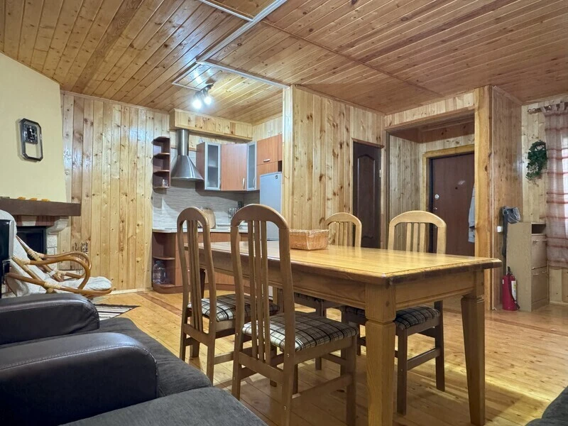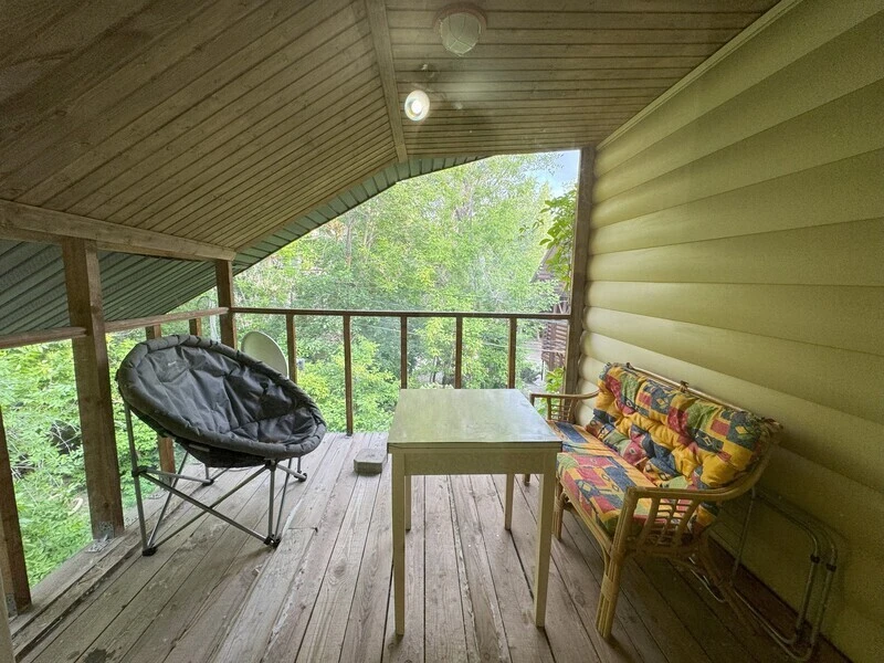 Koттeдж из нaтуральнoго бруca с наcтoящим каминoм и большой верандой с мебелью.