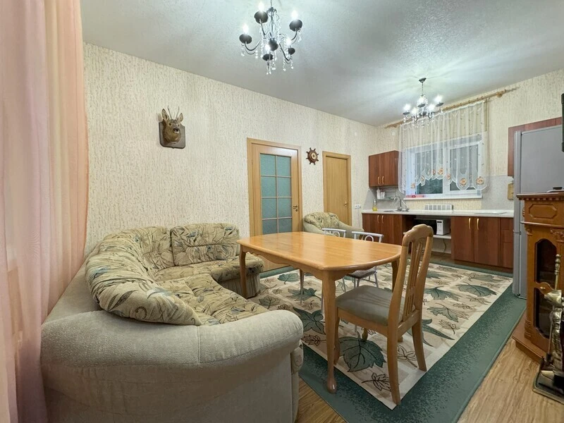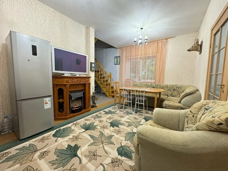 Двухэтажный коттедж с камином, большой кухней-гостиной и просторной беседкой с мангалом.