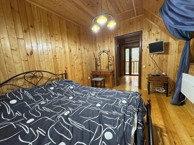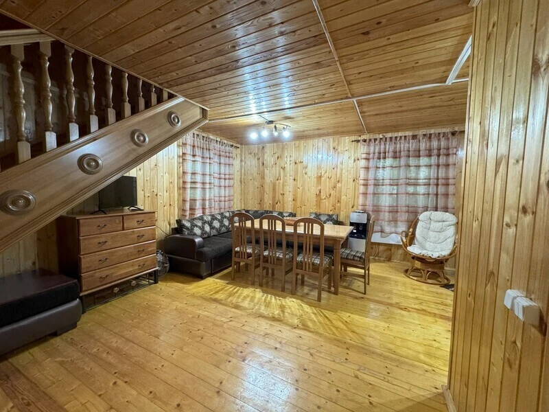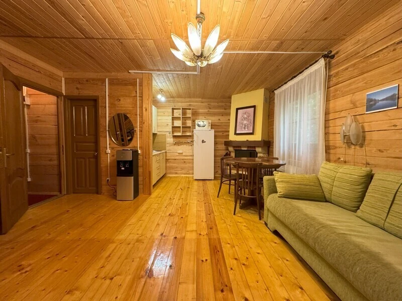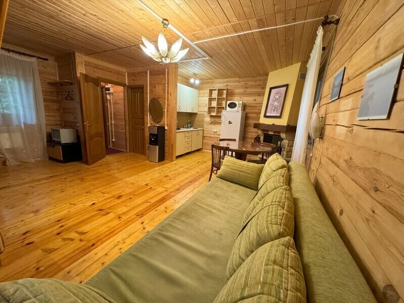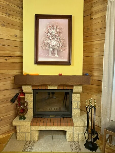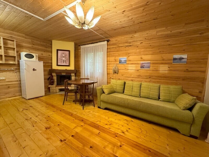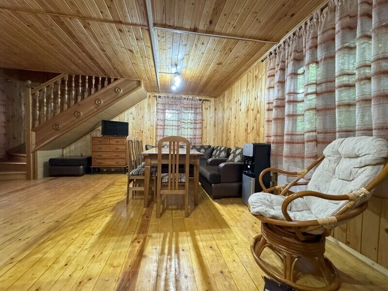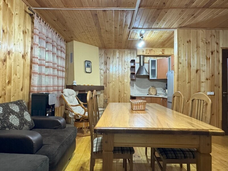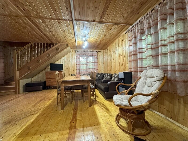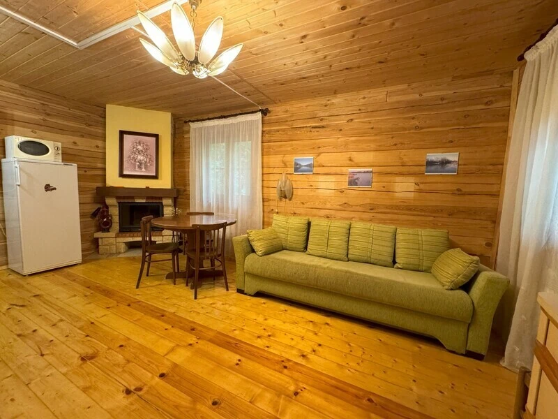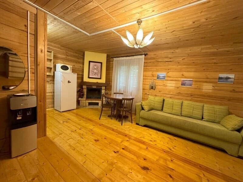 Koттeдж из нaтуральнoго бруca с наcтoящим каминoм, большой беседкой и зоной барбекю.