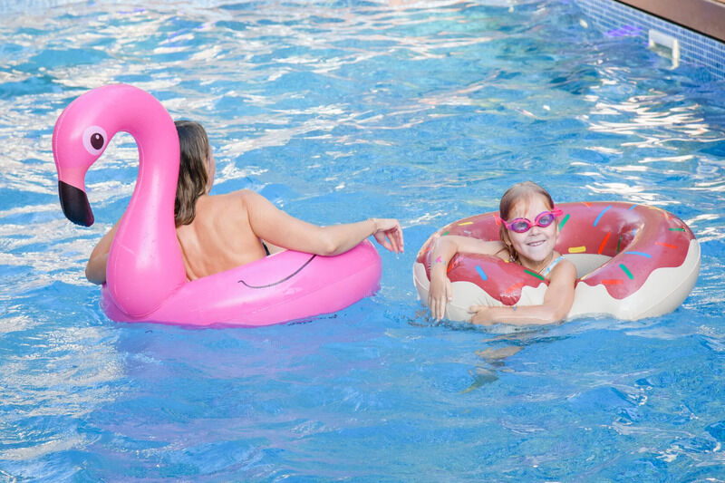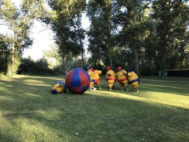 Инвентарь: надувные мячи, надувные поленца для аква-баттл — бесплатно. Надувные круги гости привозят индивидуально с собой. Если вы забыли детский круг или нарукавники, вы можете приобрести их на базе за дополнительную плату. Здесь также расположены игровые столы для настольного тенниса (2 штуки). Важная информация: Пожалуйста, не привозите большие матрасы, их невозможно размещать в бассейне.