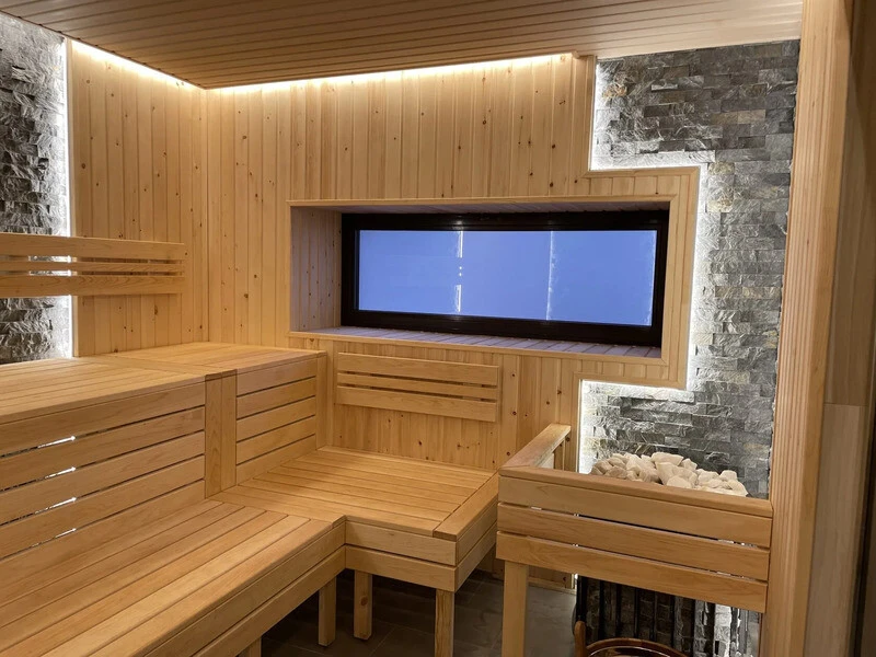 Для постояльцев апарт-отеля закреплено общественное время посещения бань: ежедневно с 9:00 до 11:00. Необходим купальный костюм. Услуга платная — 1200 ₽ с человека.