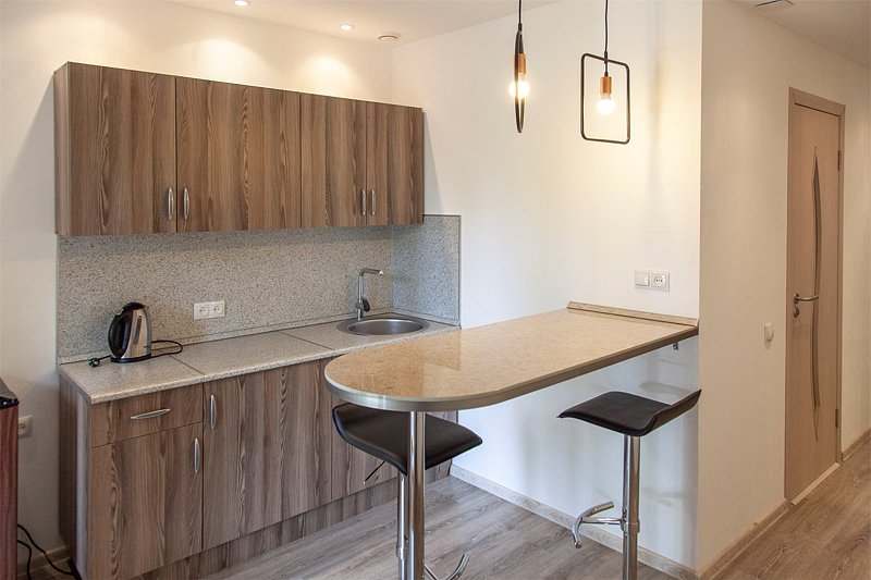 Для отдыха вдвоем или семьей: к услугам гостей 9 комфортабельных апартаментов с мини-кухней.