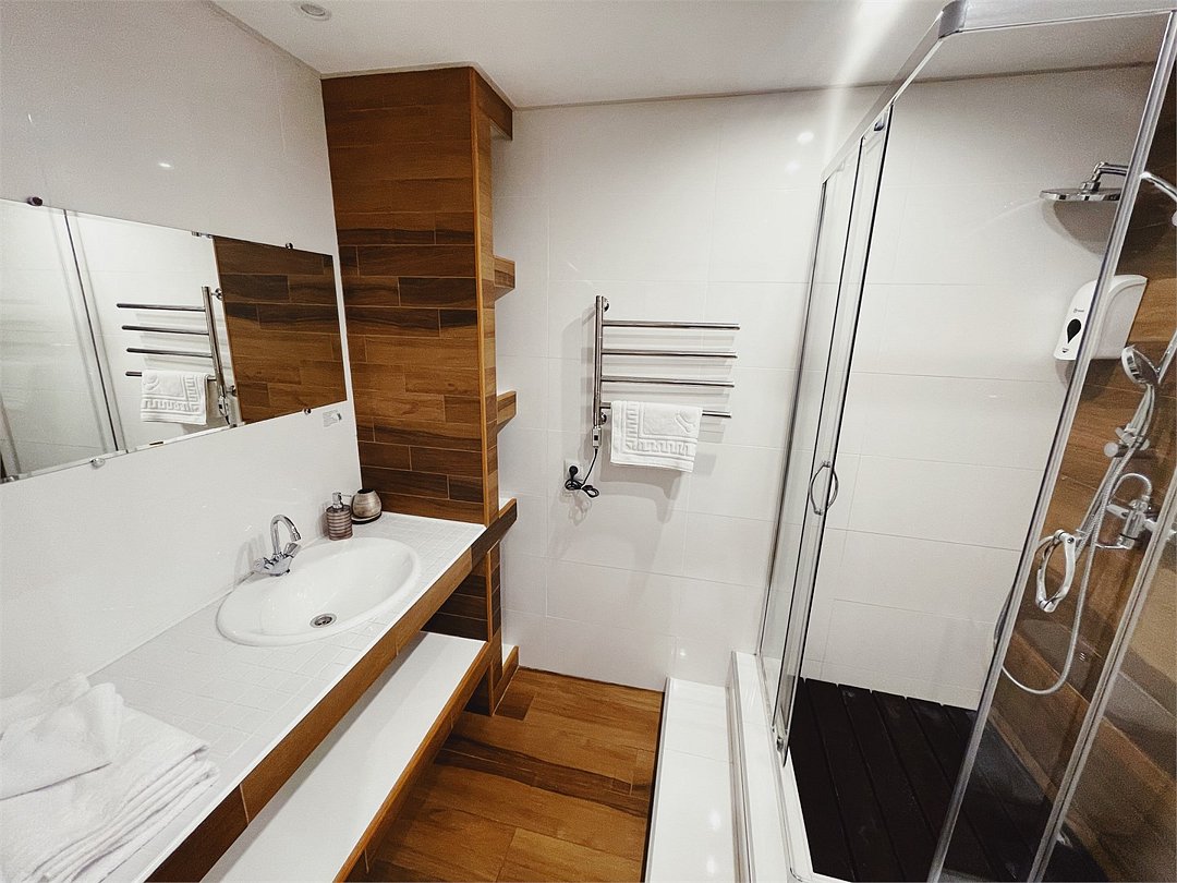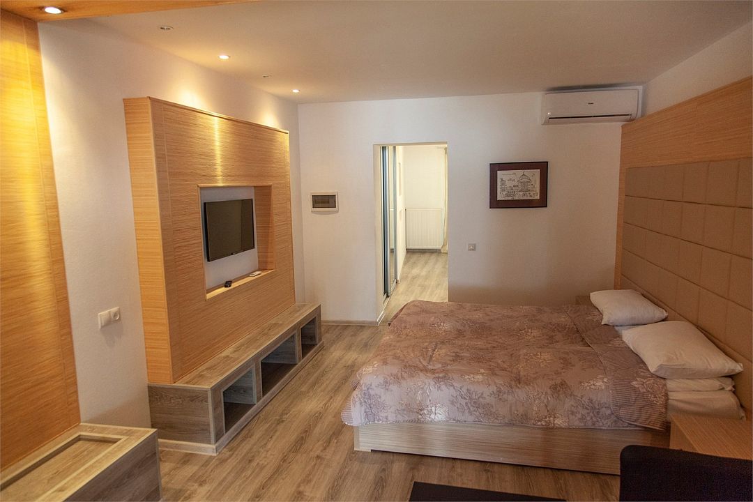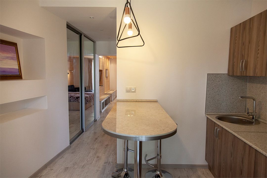 В номере: ванная комната с душем, мини-кухня (посуда, приборы на 3 персоны), холодильник, чайник, микроволновка, телевизор, кондиционер, чайный набор.