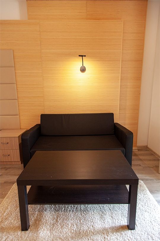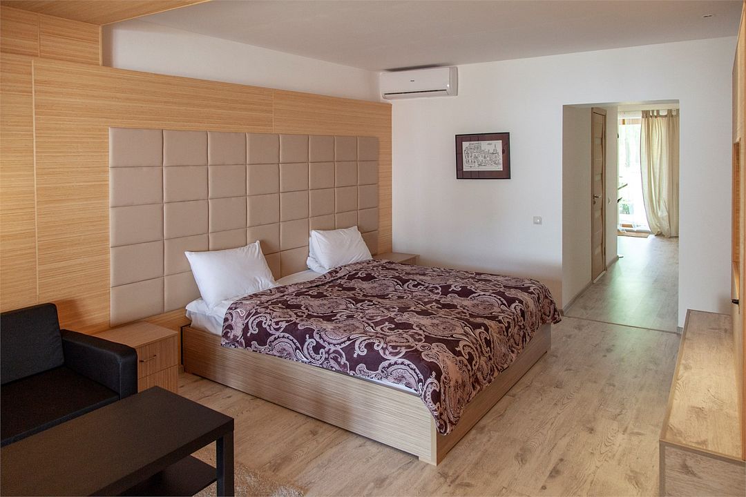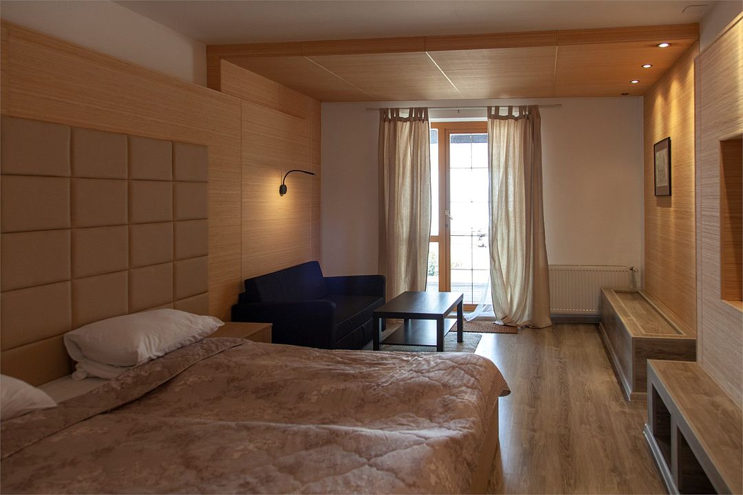 Стандартный номер с двуспальной кроватью и диванчиком.