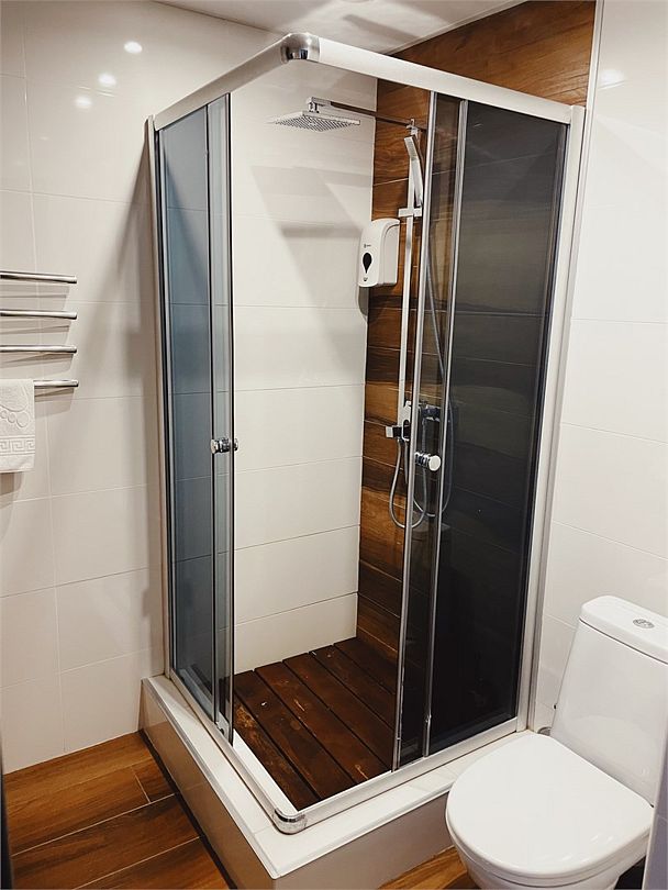В душевой предоставляются шампунь/кондиционер, мыло в диспенсерах. Полотенца в номере на двоих человек.