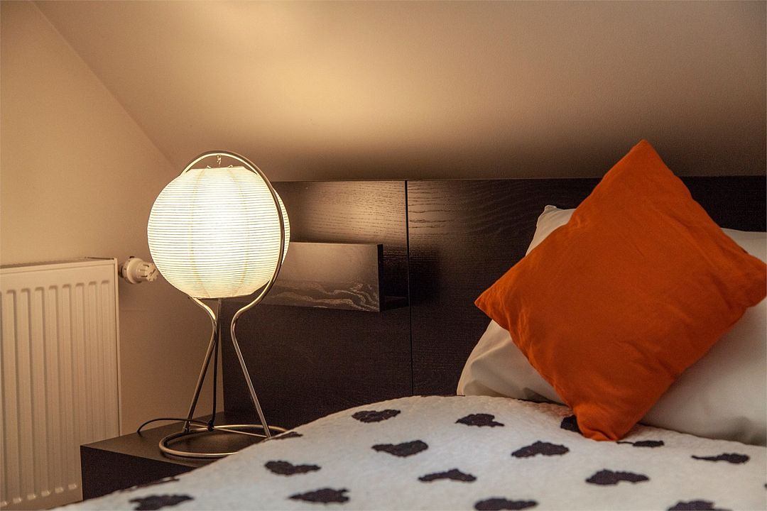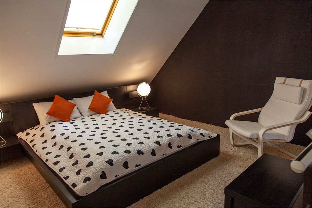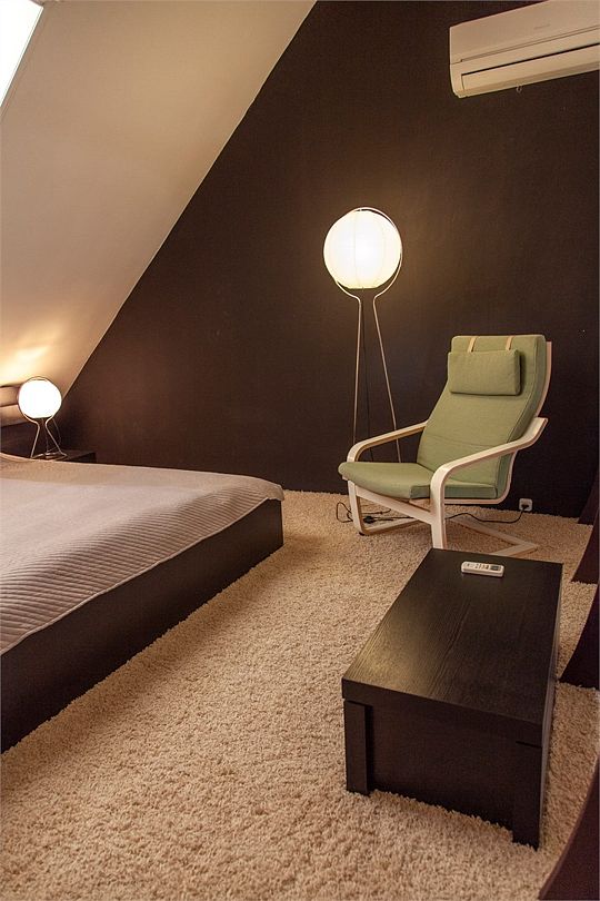 На верхнем этаже - спальная зона с двуспальной кроватью, кондиционер.