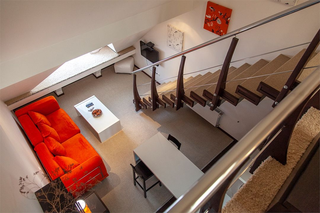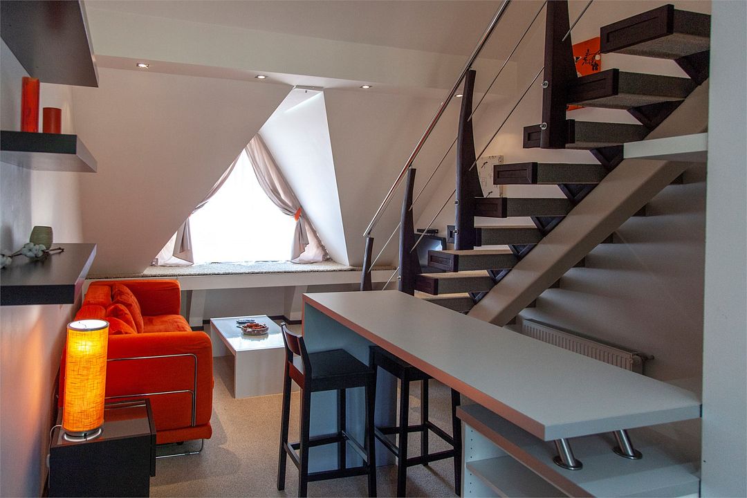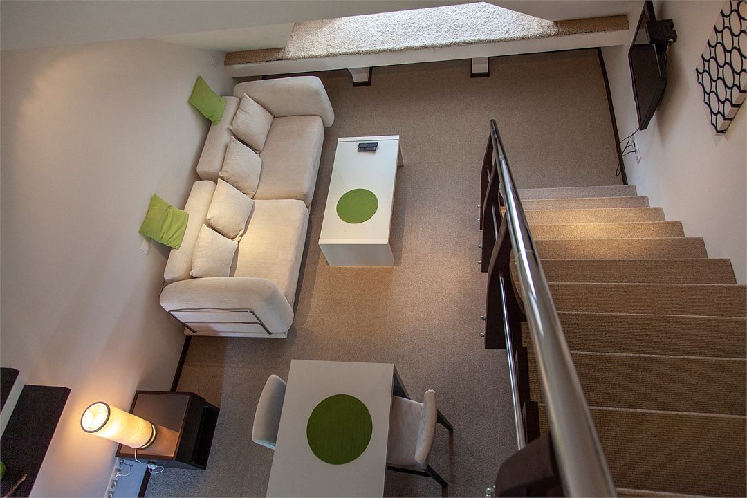 Комфортабельный двухуровневый номер с выходом на верхнюю террасу гостиницы.