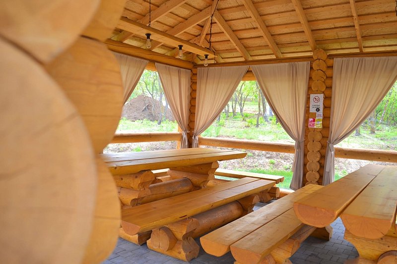 На территории парка расположены 14 беседок: 6 беседок на 15 мест, 6 на 30 мест, 2 на 50 мест. Детская площадка, санузлы, комната матери и ребенка. У каждой беседки своя мангальная зона, холодильник, разделочный стол с раковиной и краном, шампура. В продаже вода, соки, мороженое, кофе, снэки. Банкет «под ключ», сервировка, официант, аниматоры, ведущие — бронь осуществляется заранее, не менее, чем за 5 дней! Подходит для свадеб, корпоративов, конференций, фестивалей, шоу, дней рождений.