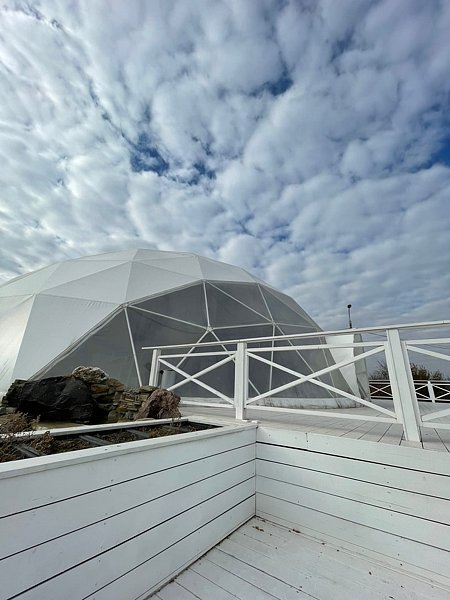 Диаметр 10 м., площадь 78 кв.м., высота купола в высшей точке 5 м. Банкетная посадка 40 чел., театральная посадка 60 чел, фуршетная 60 чел. Всесезонный. Отдельностоящий собственный санузел, сплит система тепло/холод, подсобное помещение отдельностоящее, выгрузка-погрузка, парковка. Подходит для свадеб, корпоративов, конференций, фестивалей, шоу, дней рождений.