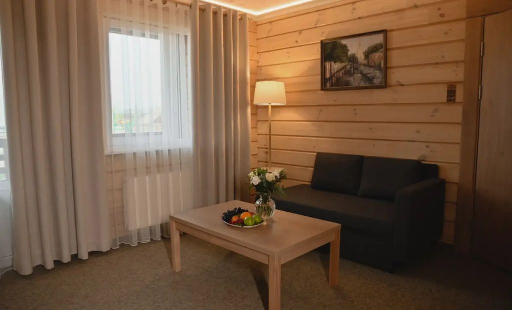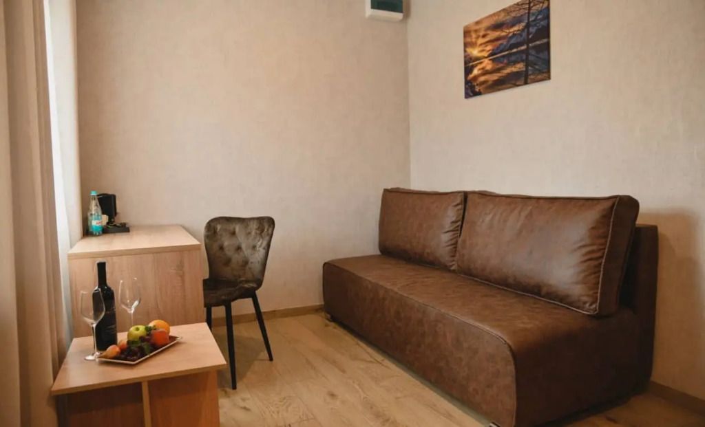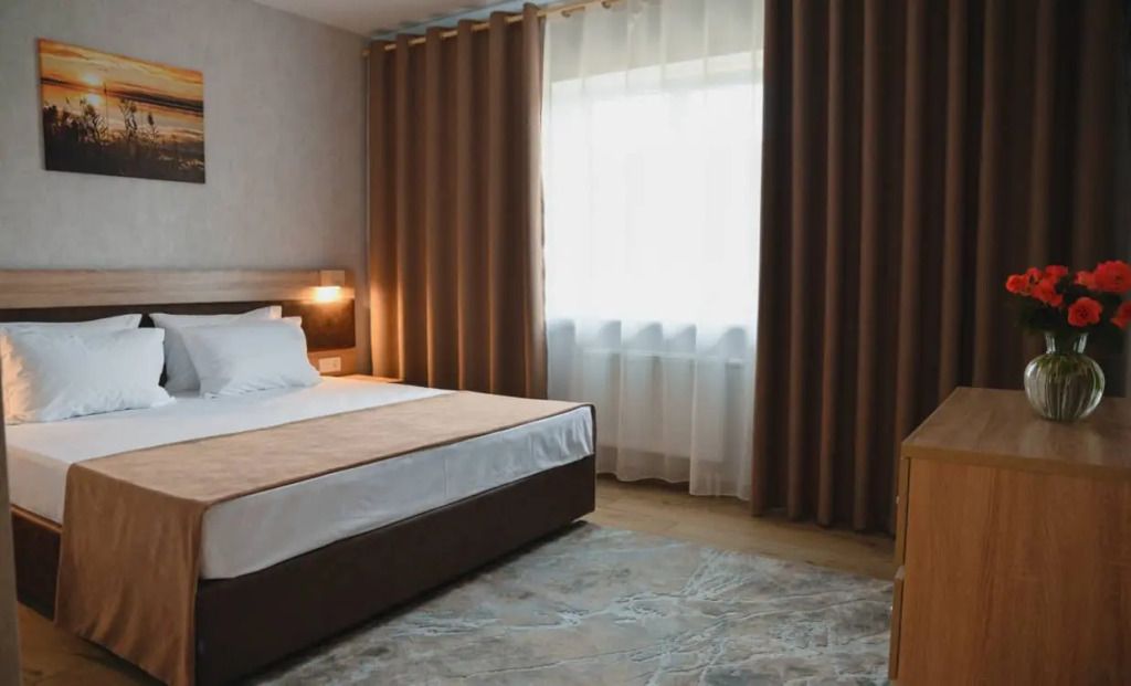 Просторный двухкомнатный номер с двуспальной кроватью, с собственной кухней.