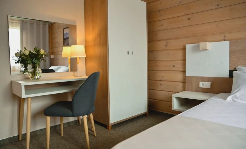 Размещение с домашними животными в номерах категории «Люкс», «Коттедж-панорама», «Апартаментах», а также апартаментах «Самолет ИЛ-18» и «Самолет ЯК-40» не предусмотрено.