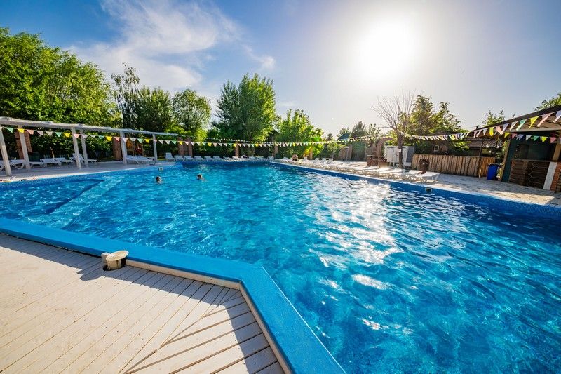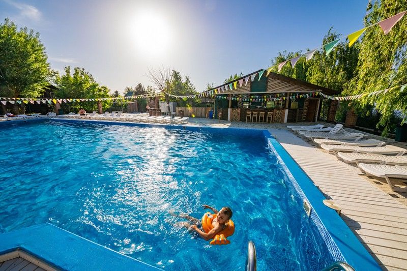 Читать полностьюНа территории гостей ждет большой плавательный бассейн, предназначенный как для взрослых, так и для детей. Вокруг него расположены удобные шезлонги, позволяющие насладиться отдыхом — отдохнуть в тени навеса или насладиться солнечными лучами между заплывами.