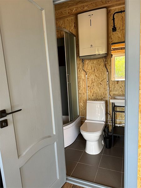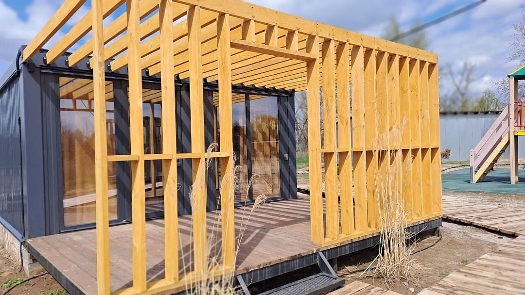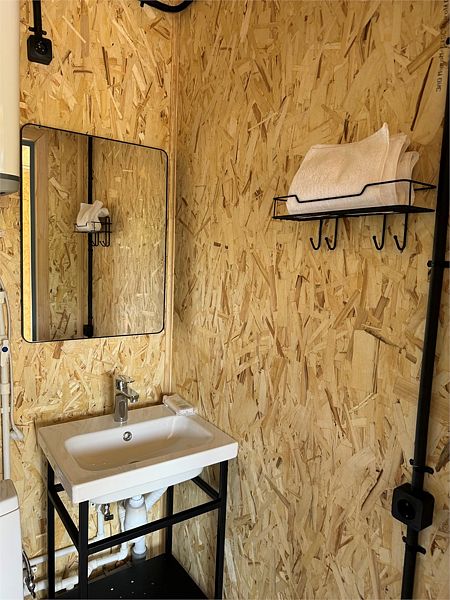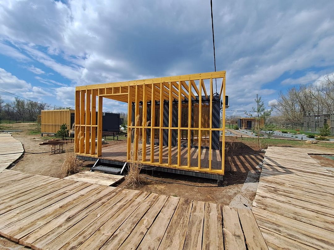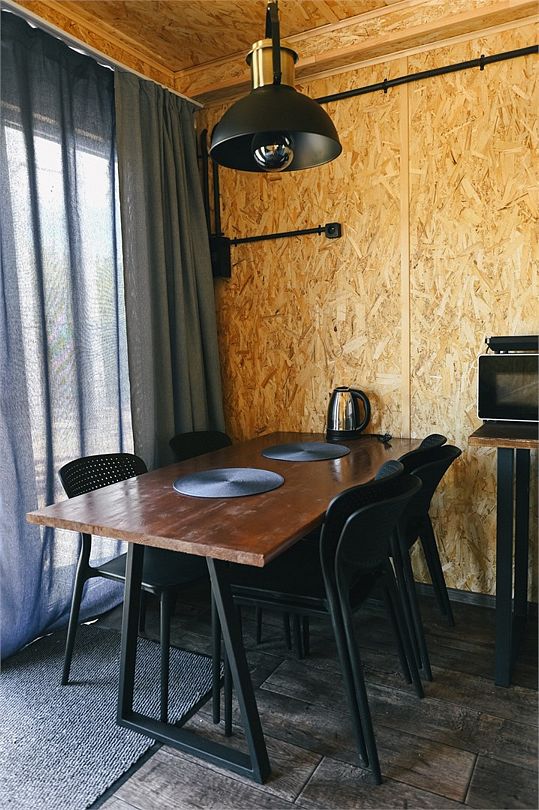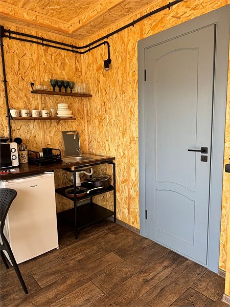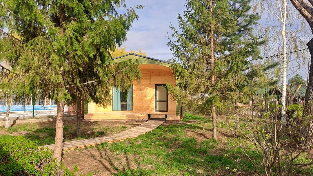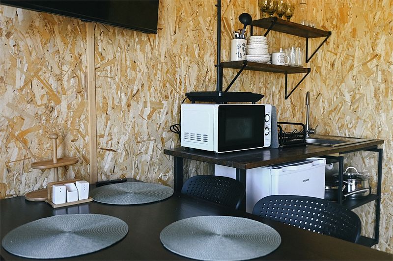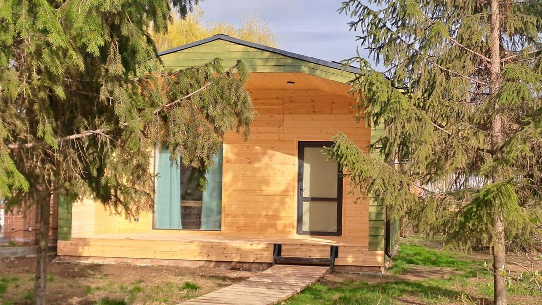 Модульный дом с уютной террасой, панорамными окнами. Каждый номер оснащен всем необходимым для комфортного проживания.