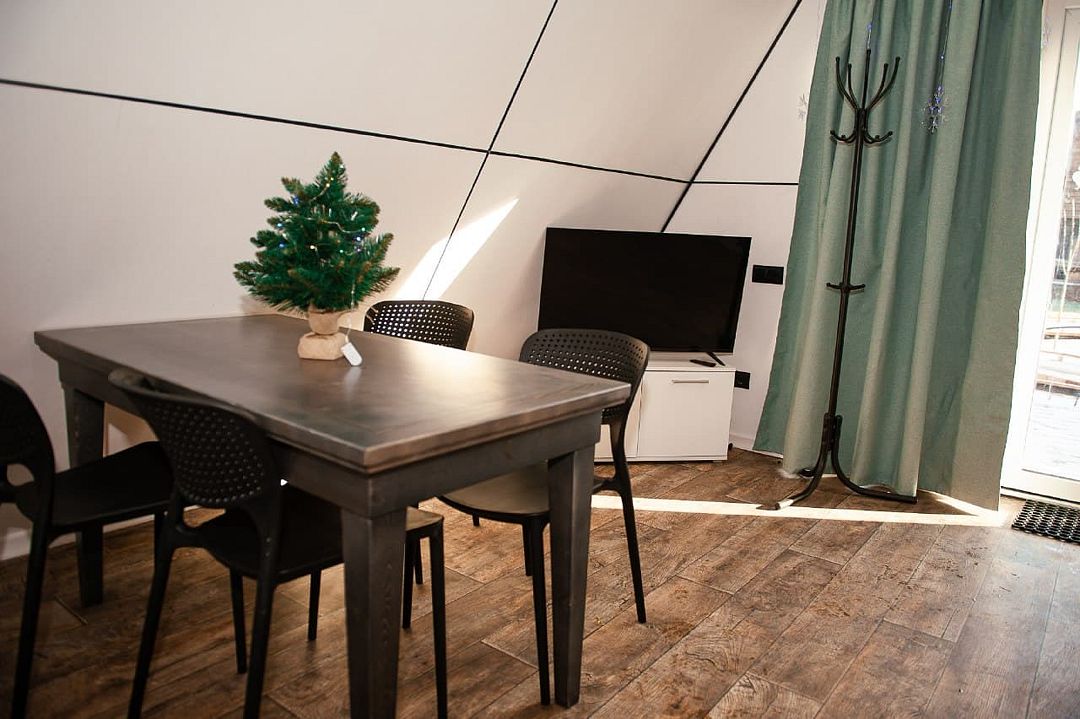 Модульный дом с уютной террасой, панорамными окнами. Номер оснащен всем необходимым для комфортного проживания.