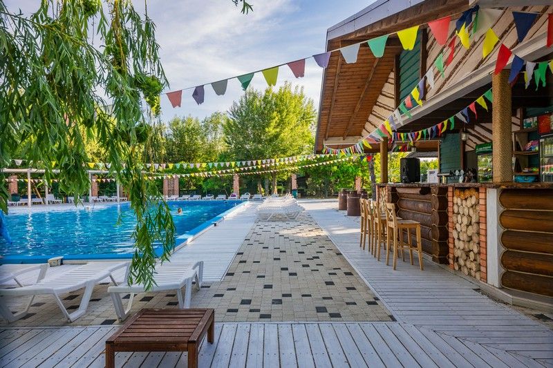 На территории базы находится большой плавательный бассейн, который станет отличным местом для отдыха как для взрослых, так и для детей. Гостям предлагается расслабиться у бара у бассейна или насладиться барбекю в уютной беседке с грилем. Ресторан с уникальным интерьером порадует разнообразием блюд и атмосферой, способствующей приятным встречам и общению.