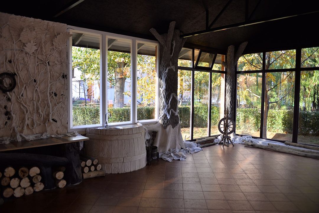 На территории базы отдыха «Барвиха» находится шатер, вмещающий до ста человек, что делает его отличным местом для организации мероприятий на свежем воздухе. Пространство идеально подходит для праздников и встреч, позволяя насладиться природой в комфортных условиях.