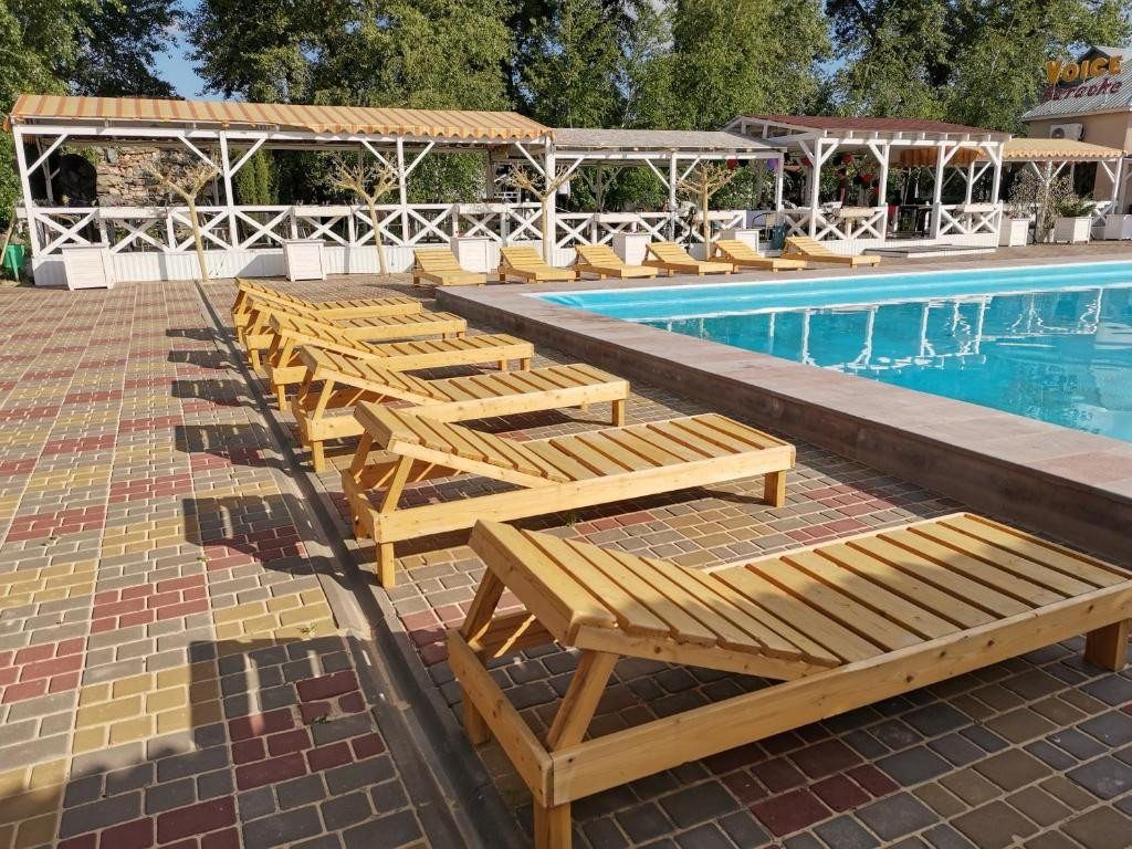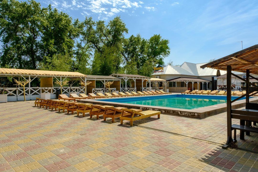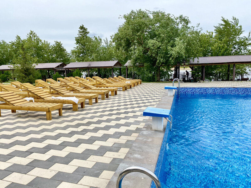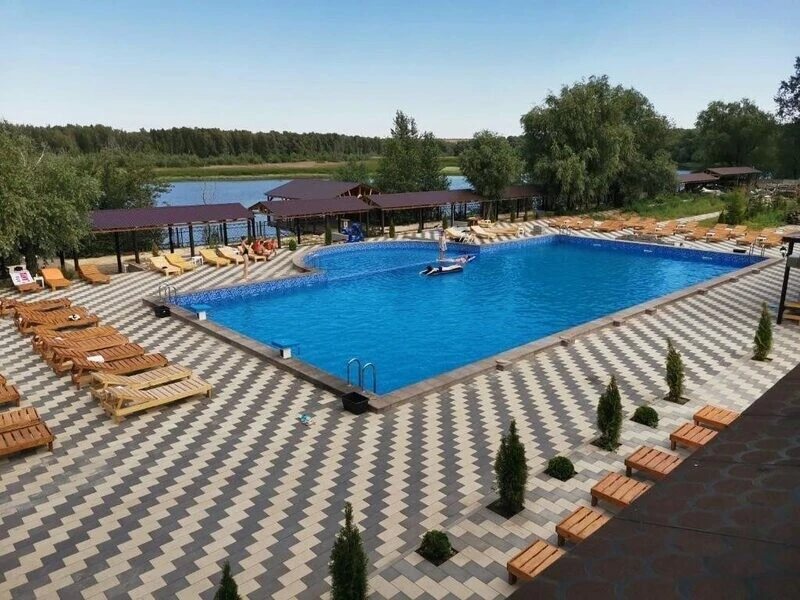 На базе отдыха «Лазурный Берег» гостей ждет просторный бассейн, окруженный уютными шезлонгами и зонтиками. Для семейного отдыха предусмотрена детская зона с безопасной глубиной, что позволяет родителям наслаждаться временем рядом с детьми, не беспокоясь о их безопасности.