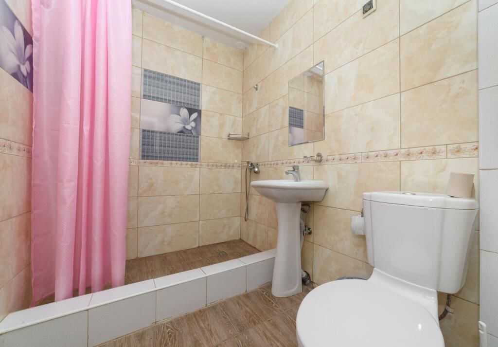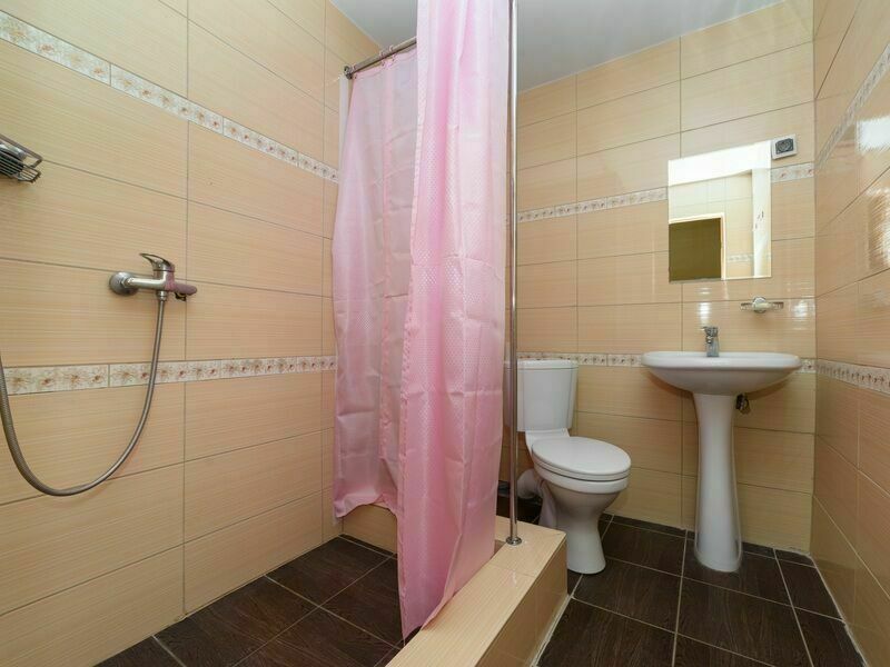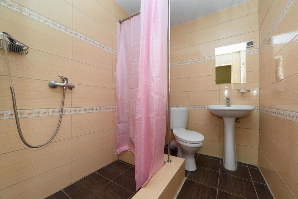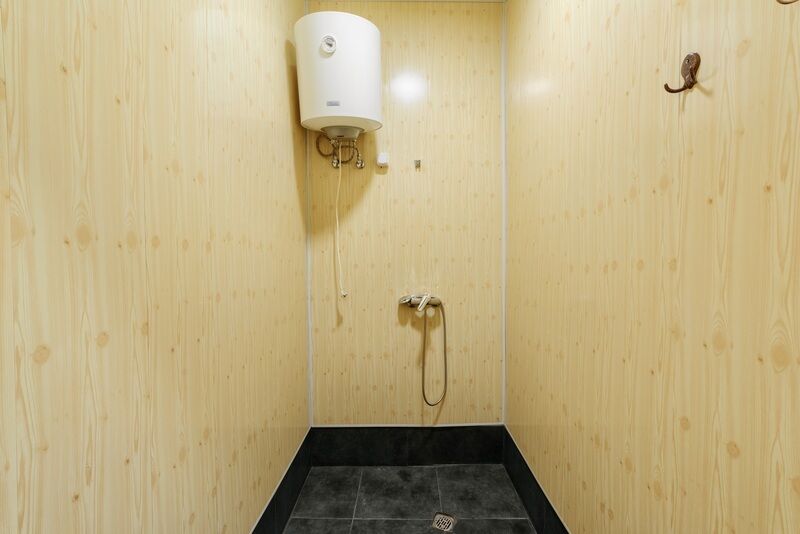 В ванной комнате: душевая кабина, санузел, раковина, горячая и холодная вода. Около домиков стоит беседка и мангал.