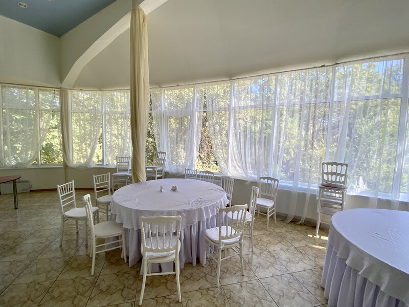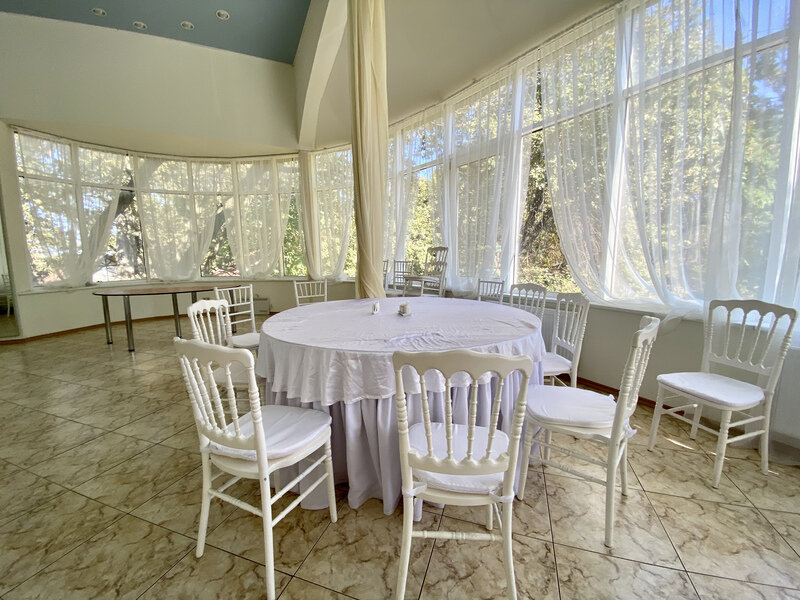 Если нужна зона под выездную регистрацию — 5000 ₽ + в подарок до 20-ти стульев Кьявари на выездную регистрацию (при бронировании за 3 месяца). Если нужно больше стульев — аренда 250 ₽ за один стул.