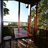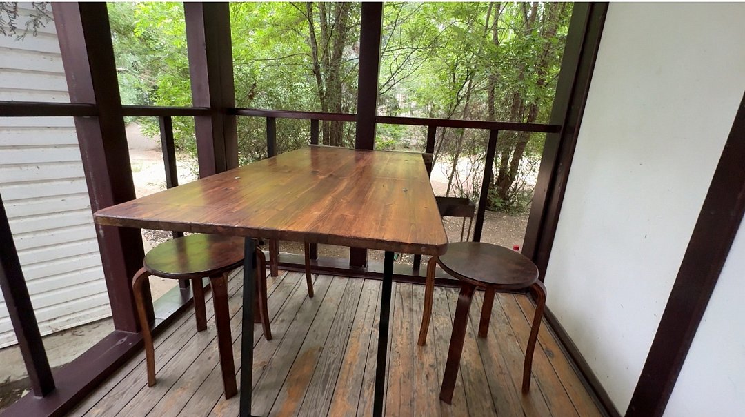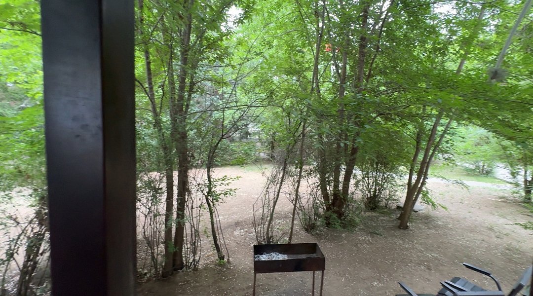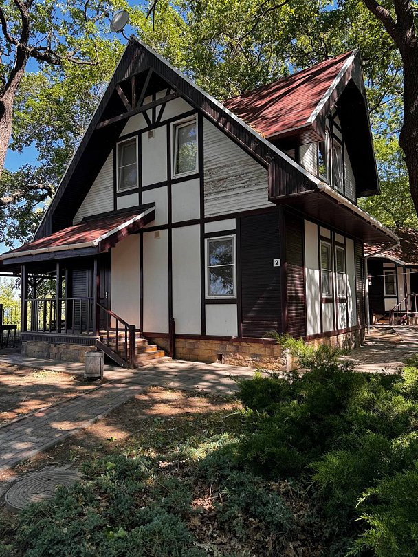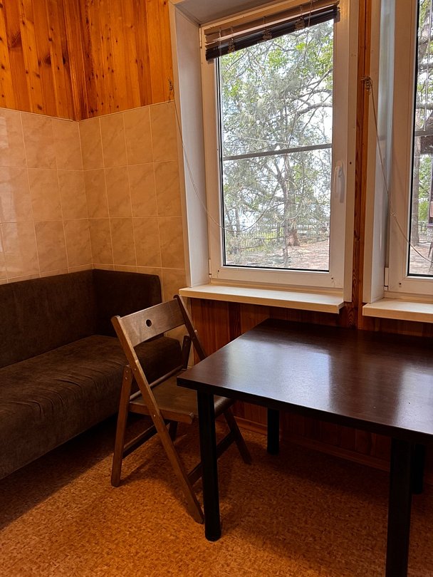 - У дома № 2 — 8 спальных мест: на втором этаже 2 комнаты, одна на 4 человека (двухместный диван и 2 односпальных кровати, которые можно сдвинуть) и вторая на 2 человека (2 односпальные кровати, не сдвигаются), на первом этаже 2-х местный диван. На первом этаже расположена кухня, объединенная с гостиной и барная стойка. В доме: ТВ, холодильник, чайник, микроволновка, кондиционер, набор посуды, вся необходимая мебель, душ и туалет на каждом этаже, постельное белье. Дом хорошо отапливается. Большое место для застолий. У каждого дома есть своя беседка с видом на Волгу и мангальной зоной.