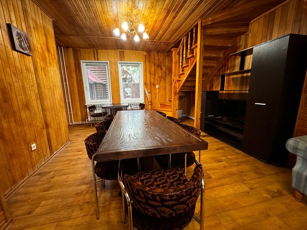 Двухэтажная баня с купелью. Русская парная на дровах, на 10 человек. Комната для отдыха, душевая, бильярдная на втором этаже. Стоимость с бильярдом — 3500 ₽/час до 10 человек.