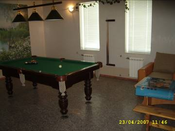 Жарким днем вы можете расслабиться в тени деревьев, поплавать в бассейне, отведать шашлыков приготовленных на мангале, покататься на качелях, отдохнуть за партией игры в бильярд.