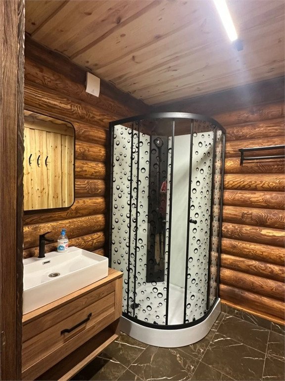 Двухкомнатный номер с верандой, общей площадью 44 м² (гостевая комната 13 м², спальня 10 м², веранда 10 м²). Номер оснащен санузлом с душевой кабиной (горячая и холодная вода), холодильником, сплит-системой тепло-холод, телевизором 21» с плоским экраном, DVD-плейером, настенными обогревателями, в спальне располагаются три полутораспальных деревянных кровати с ортопедическими пружинными матрасами (либо 2 кровати), прикроватные тумбочки, в гостевой комнате — раскладывающийся диван, электрочайник, настенные часы, стол, стулья.