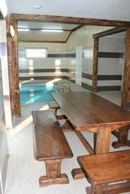 - бассейн (с 14:00 до 23:00) — оплачивается отдельно (группа до 10 человек от 7 лет, дети до 7 лет не учитываются и проходят без оплаты);