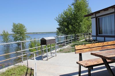а террасе, прилегающей к сауне, можно устроить небольшой пикник и приготовить шашлыки на мангалах. Изолированная спальня Гостиная с панорамным окном, плазменным телевизором. Кухонный уголок (СВЧ-печь, чайник, мойка, комплект посуды ). Сауна с банными принадлежностями. Открытая терраса со столом, лавочками, мангалом.
