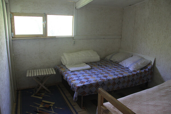 Гостевой домик включает в себя оборудованную кухню (холодильник, плита, посуда), умывальник и две комнаты на 3 и 4 спальных места с возможностью установки одного дополнительного спального места в любой из комнат. Туалет и душ расположены на территории.
