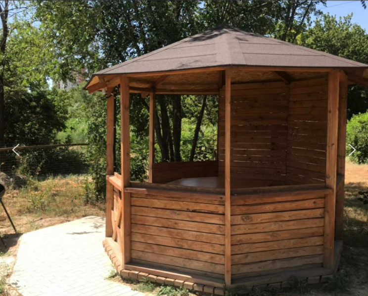 - Беседки. Рассчитаны на компанию до 6 человек. Рядом мангал, есть освещение.