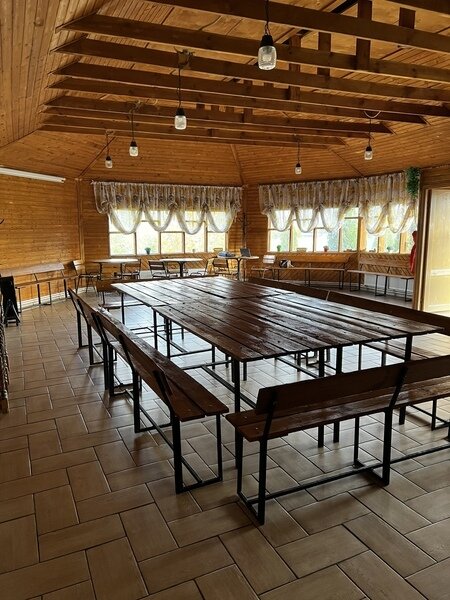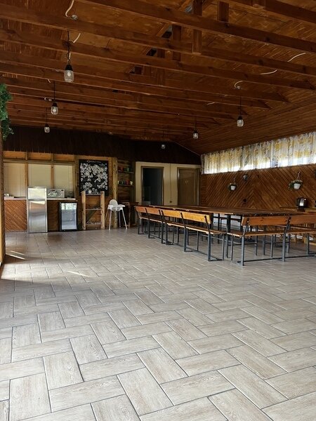 Площадка рассчитана на компанию до 40 человек. Свой мангал, холодильник, санузел, проектор, отопление. При аренде от трёх часов мешок угля, розжиг, решетка, шампуры, чайник включены в стоимость.