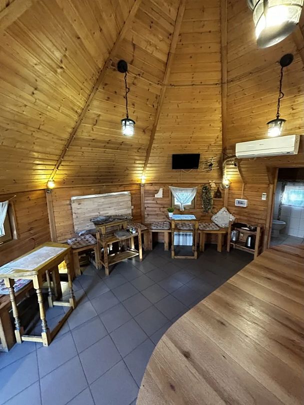 Читать полностью- Гриль–домики. Зал домика рассчитан на компанию до 12 человек. Внутри помещения установлен гриль. Шампуры и решетку вам предоставят на месте. В домике — кухонные мелочи, электрический чайник, телевизор. Есть санузел, отопление, сплит–система. Рядом с каждым домиком расположена летняя территория, на которой стоят садовая мебель, большой зонт, уличный мангал. Один мешок угля входит в стоимость услуги. Можно также воспользоваться печью для приготовления блюд в казане. Стоимость: понедельник–четверг — 4200 ₽ / 3 часа, пятница, суббота, воскресенье и праздничные дни — 4700 ₽ / 3 часа, продление аренды, начиная с четвертого часа — 1300 ₽.