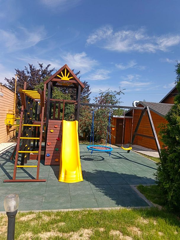 На территории есть детская площадка, по запросу предложат настольные игры. Отдыхающие могут воспользоваться тандыром или баней. Баня рассчитана на одновременное пребывание 6 человек, там имеются кедровая бочка и купель.