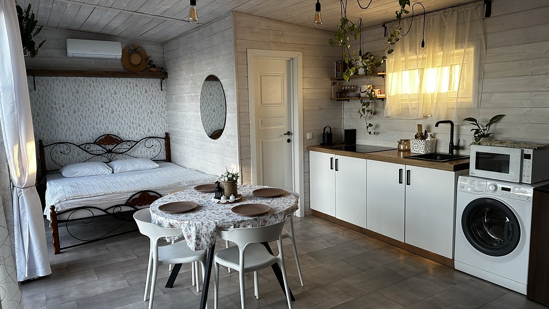 Домик порадует вас расслабляющей атмосферой, стильным и приятным интерьером и комфортом.