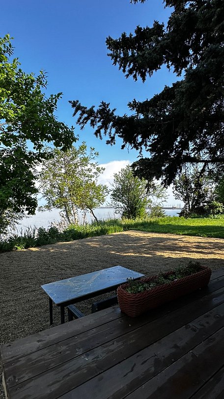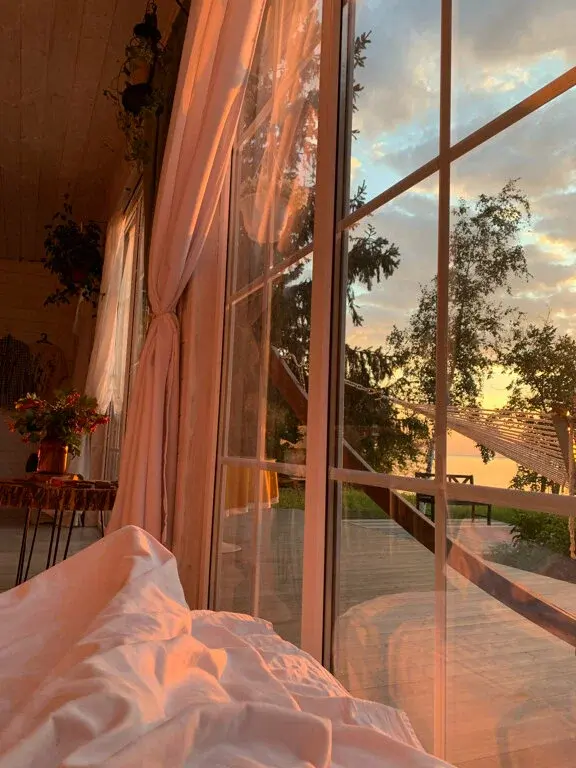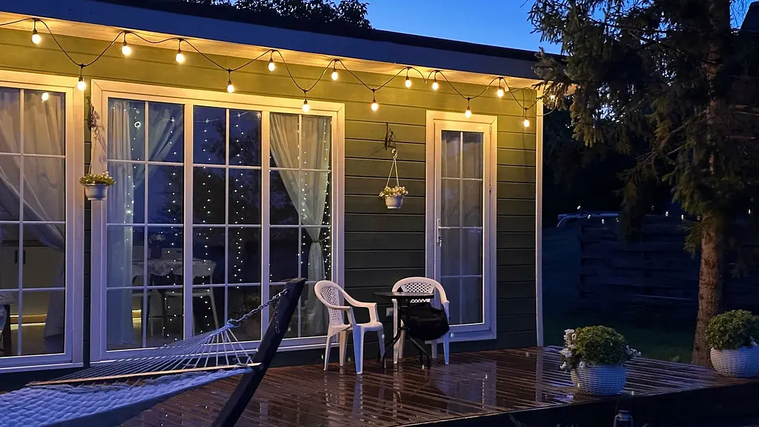 На территории дома установлен гамак и зона отдыха, с деревянными лежаками, чтобы любоваться видом на реку и наслаждаться тишиной и чистым воздухом.
