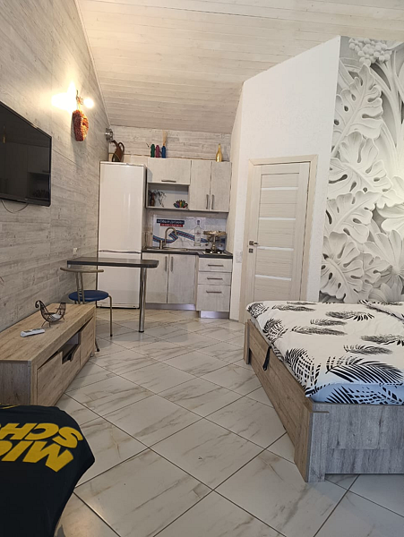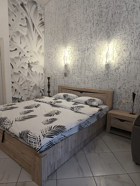 Апартаменты в гостевом доме, имеющем 3 отдельных гостевых номера, в каждом из которых имеется: двуспальная кровать, кресло-кровать, душ, санузел, раковина.
