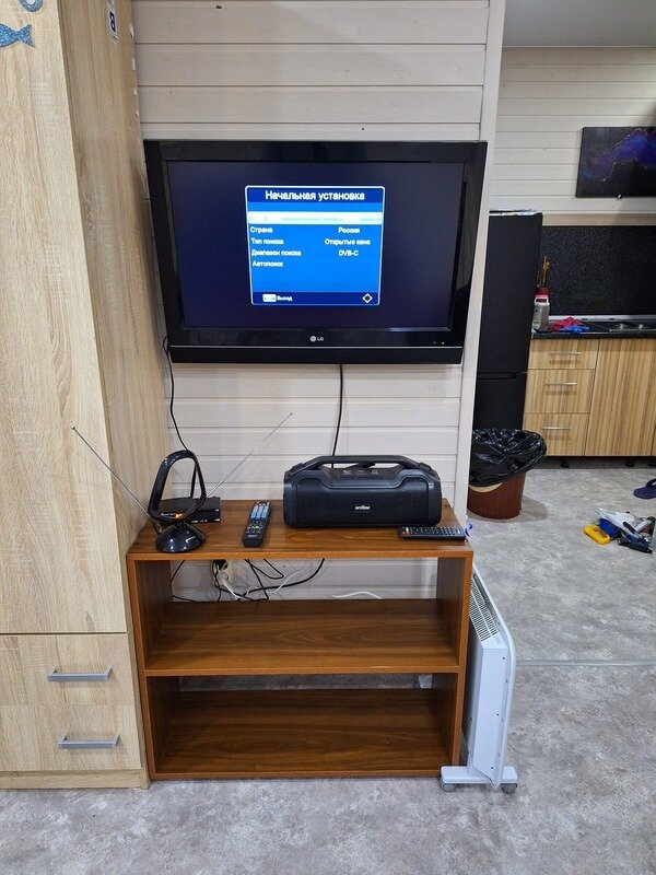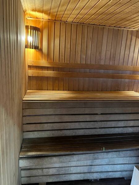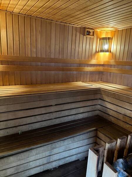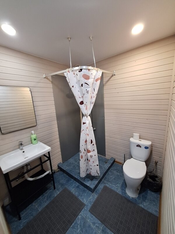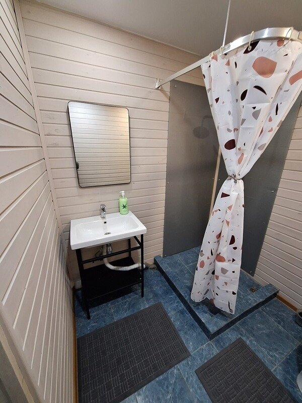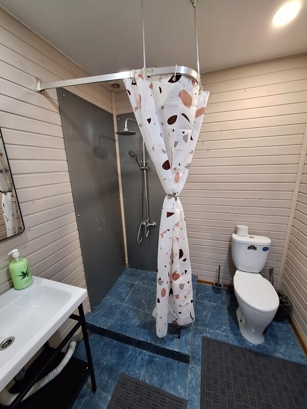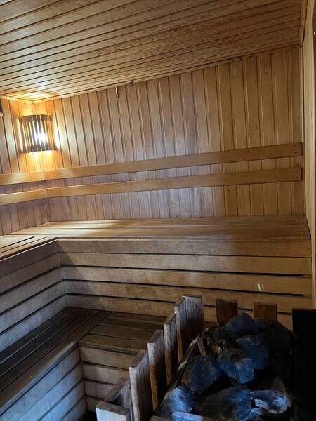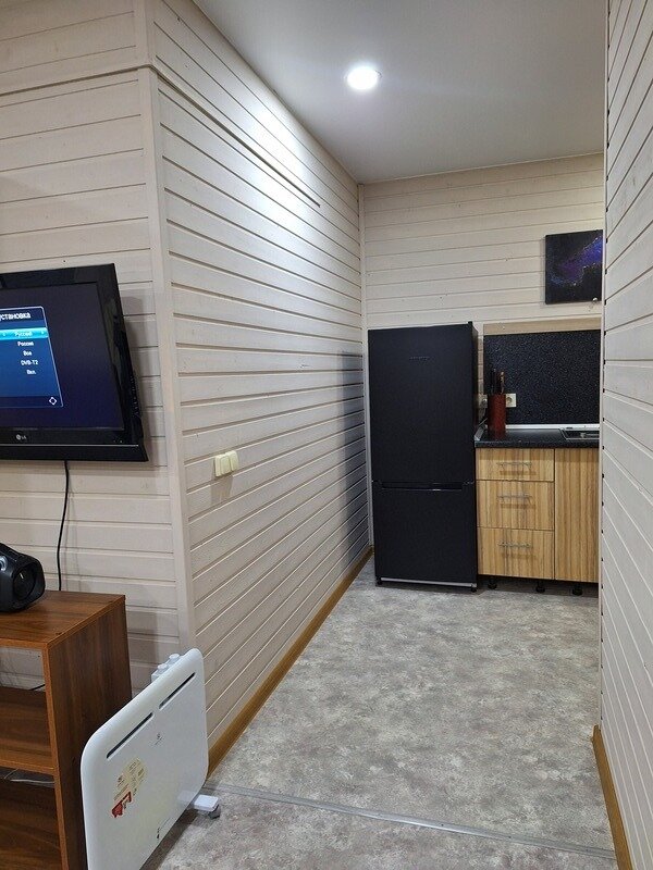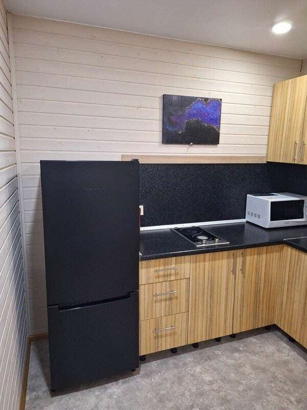 Есть сауна электрическая, кухня, душевая/туалет, мангал с шампурами.