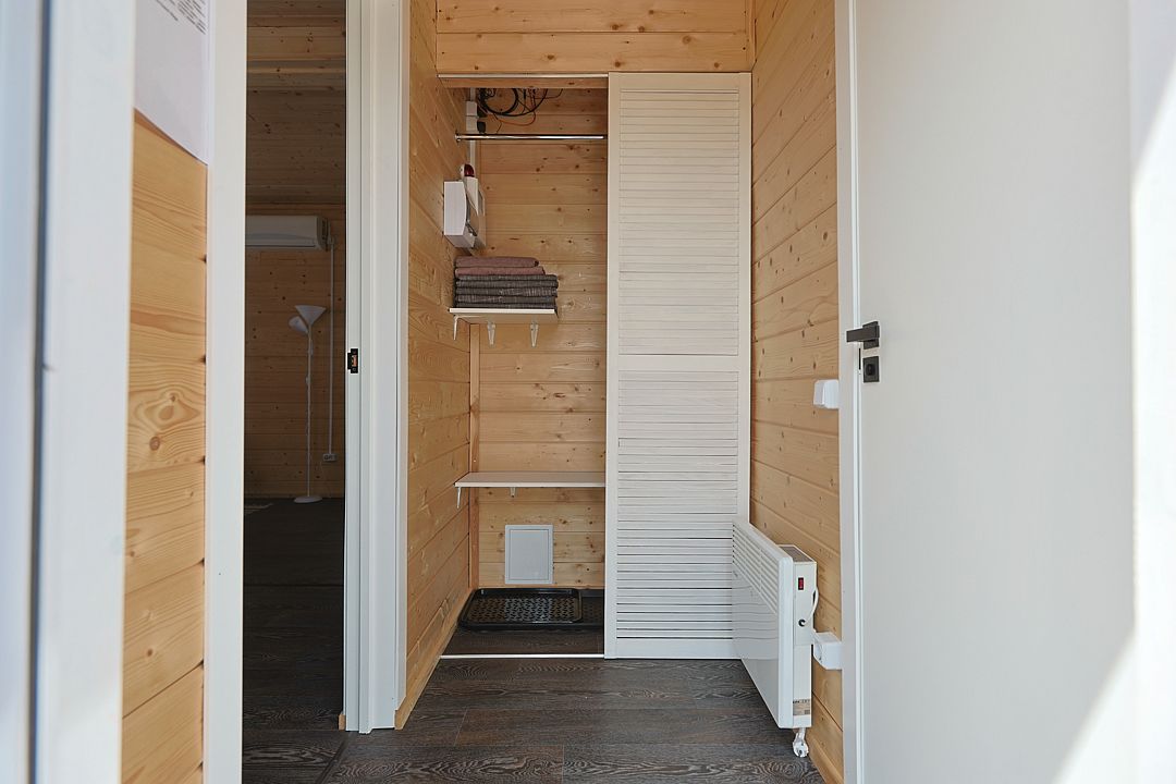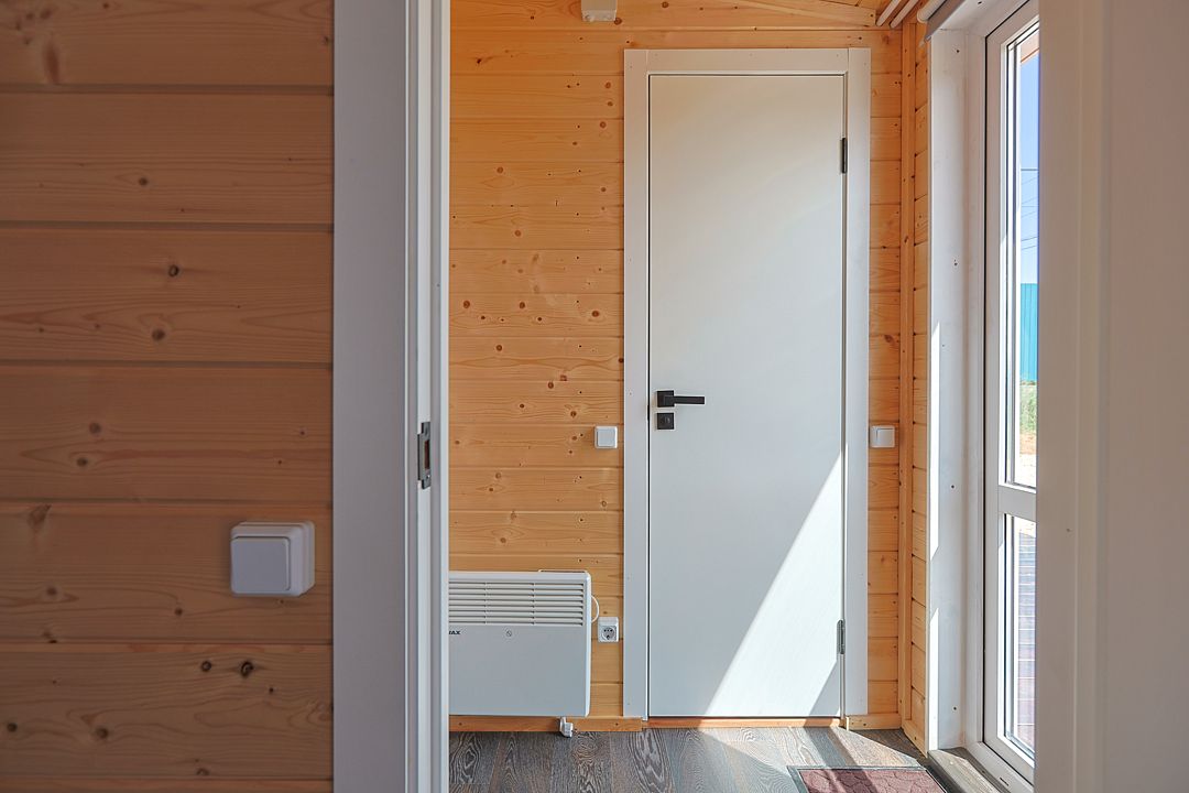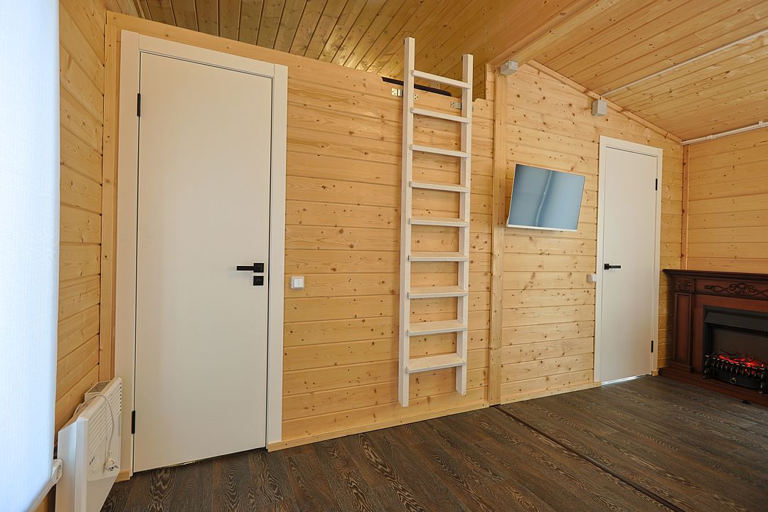 Температуру в домике Вы можете регулировать, настроив конвекторы и электрический камин.