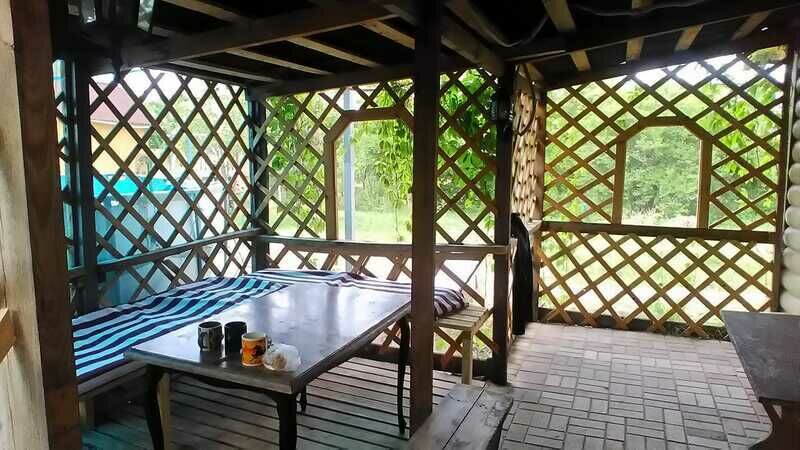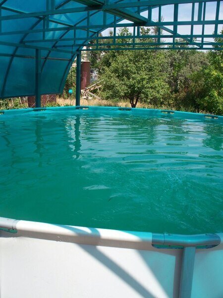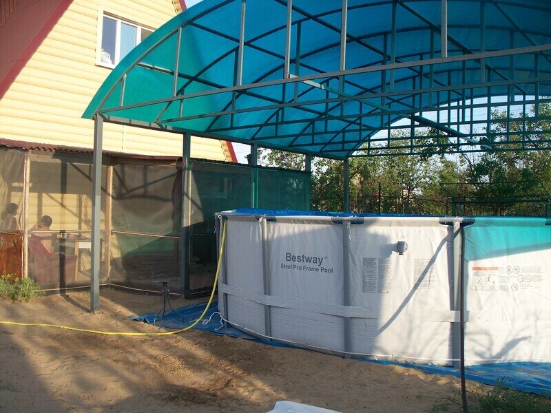 Тип бассейна: открытый бассейн, каркасный бассейнСезонный бассейн под навесом расположен на территории гостевого дома.
