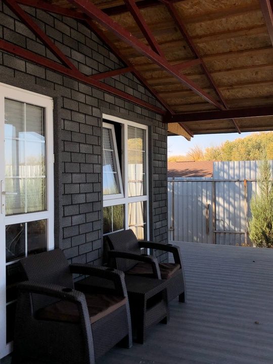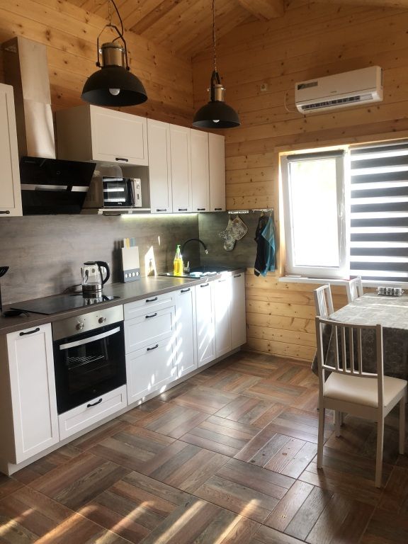 Внутри: спальные места, кухня-гостиная и вся необходимая бытовая техника. Есть тёплая закрытая терраса и мангальная зона.