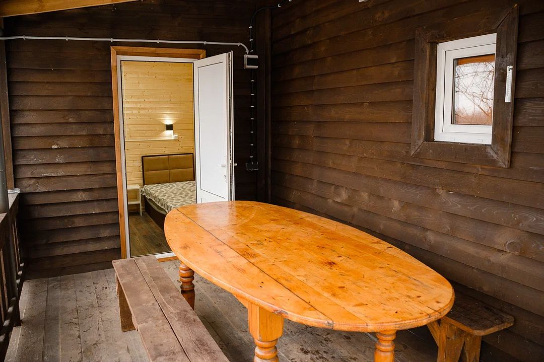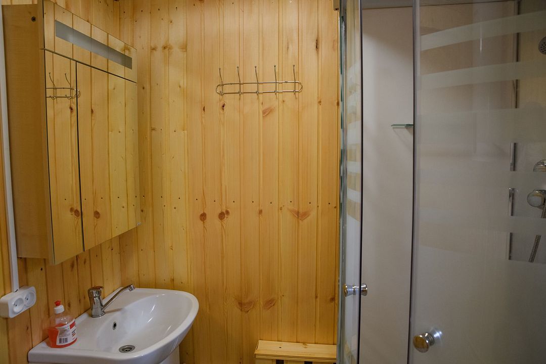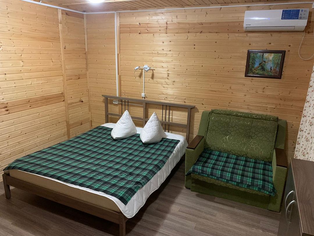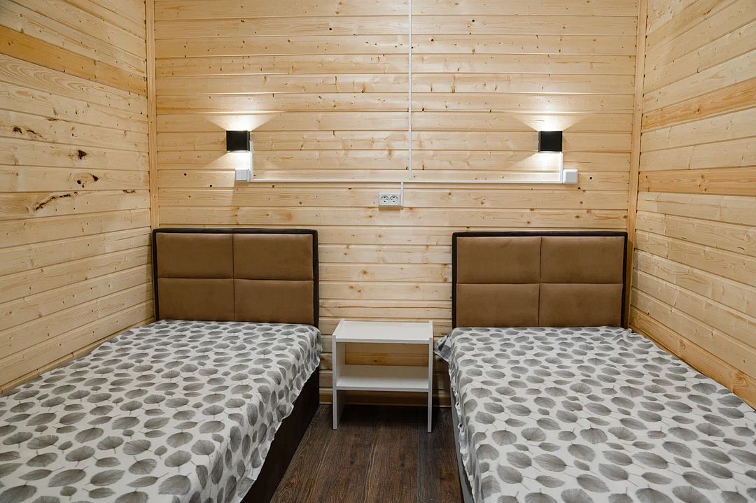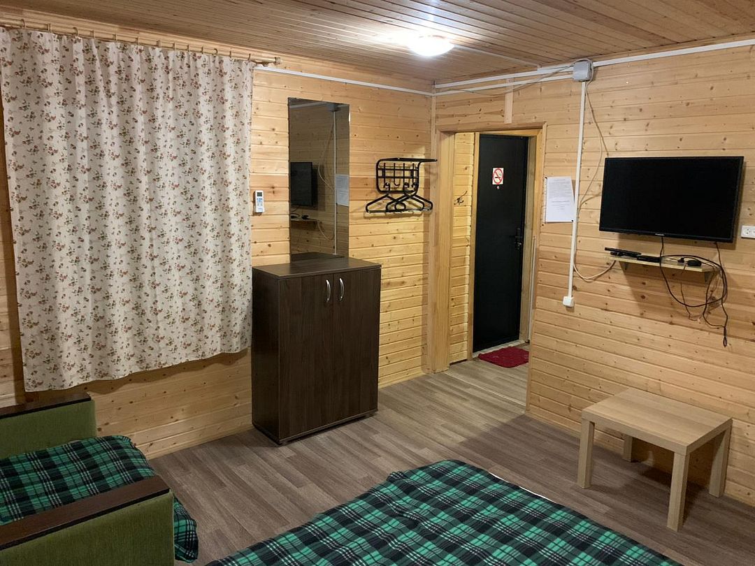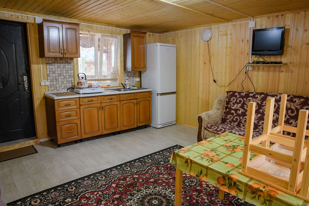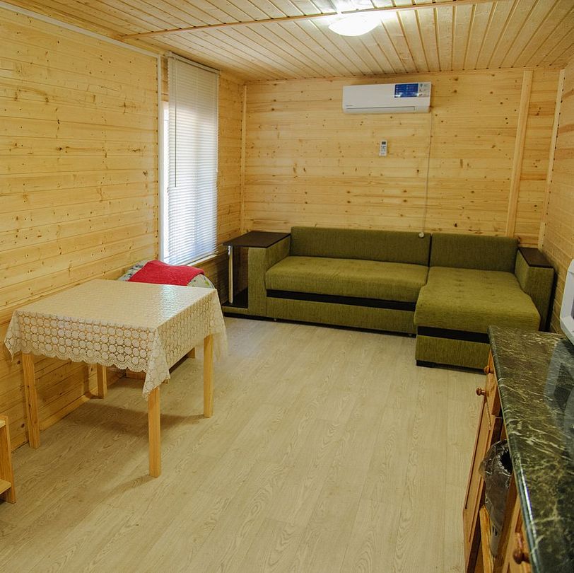 В домике есть большая комната в которой расположена кухня, диван и телевизор. В маленькой комнате две раздельные кровати. Домик отапливается.