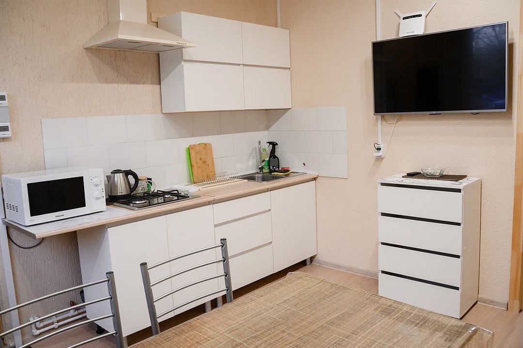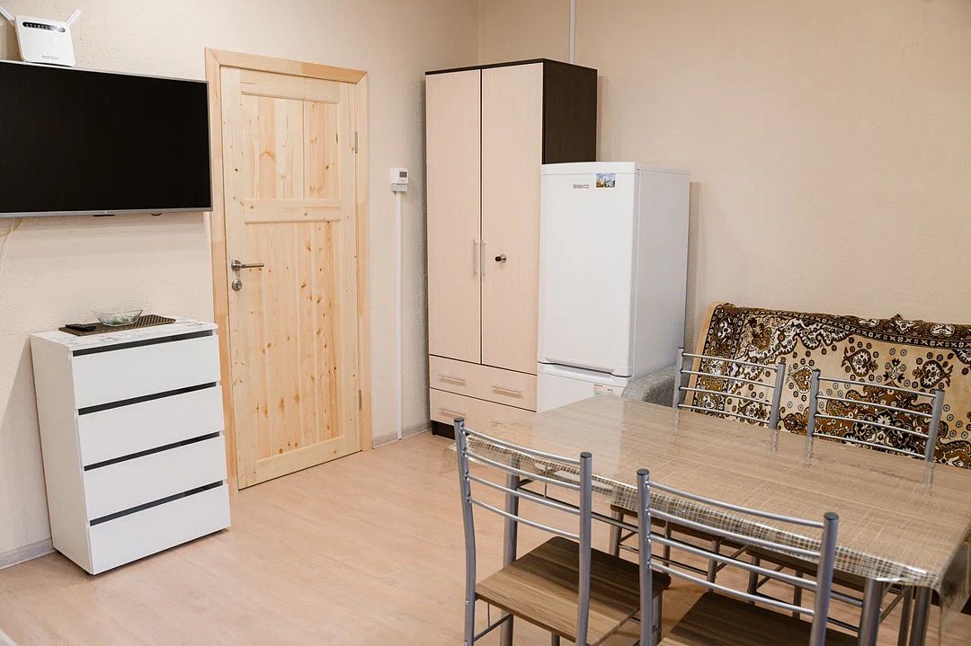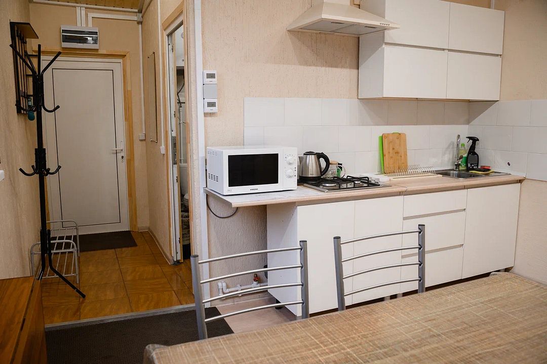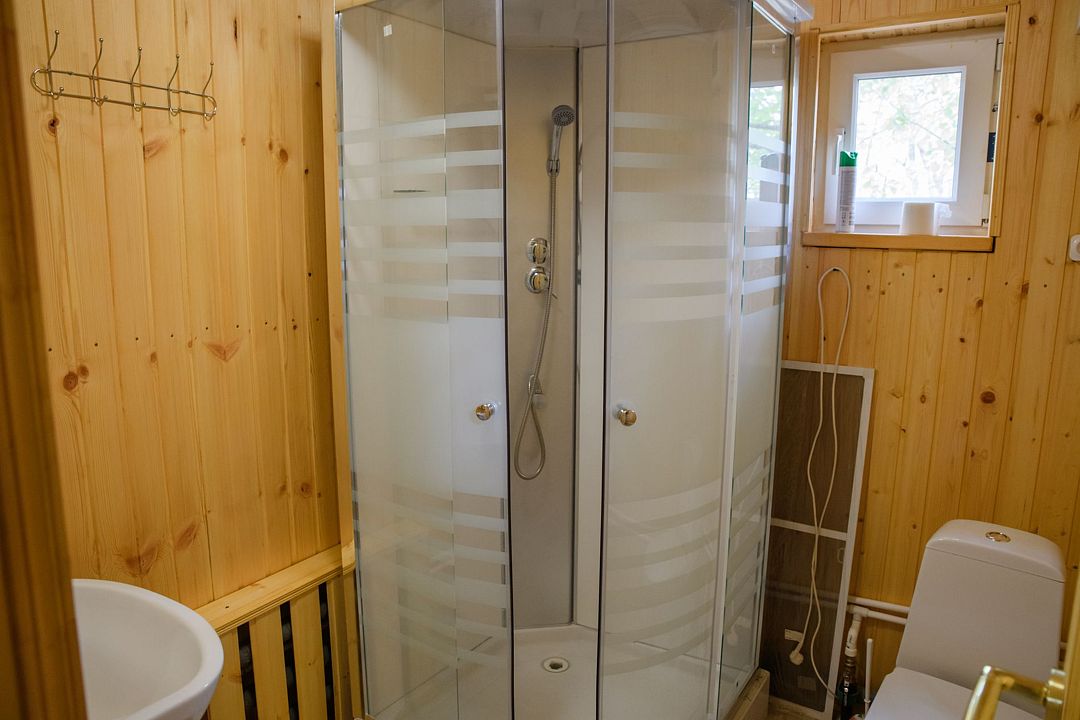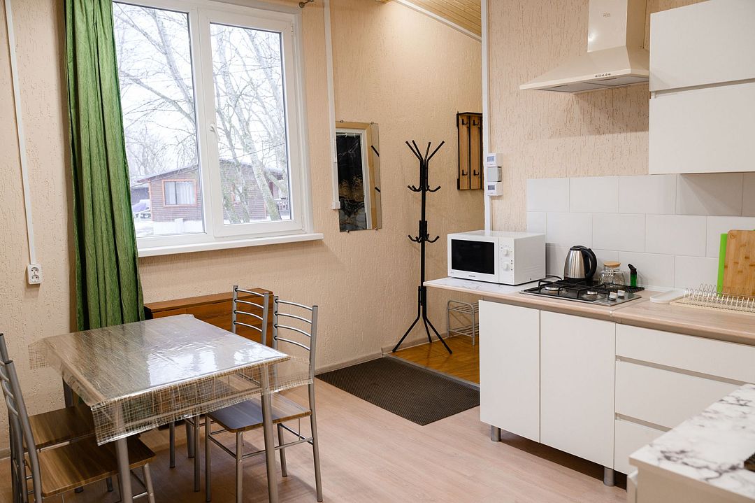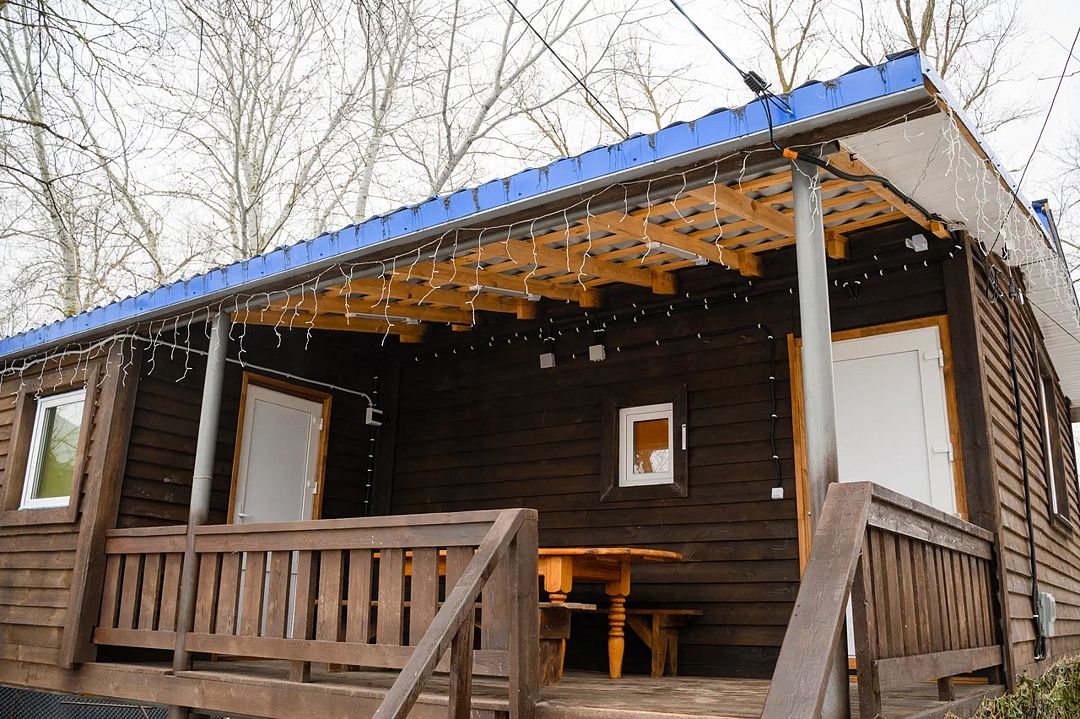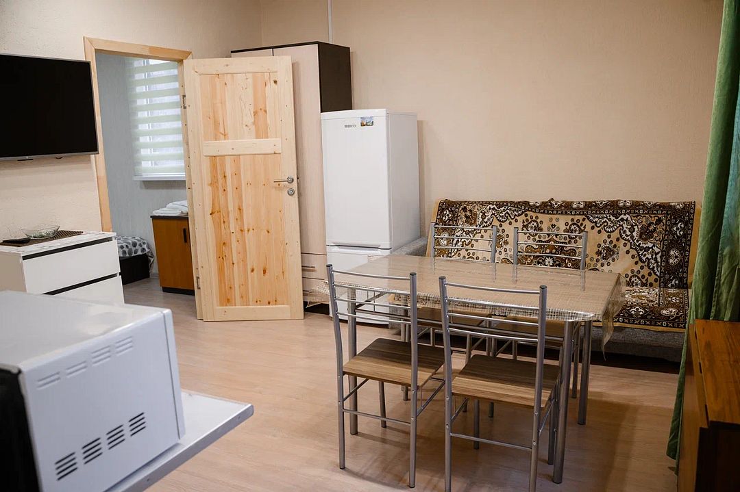 В домике есть большая комната в которой расположена кухня, диван и телевизор. В маленькой комнате две раздельные кровати. Домик отапливается.