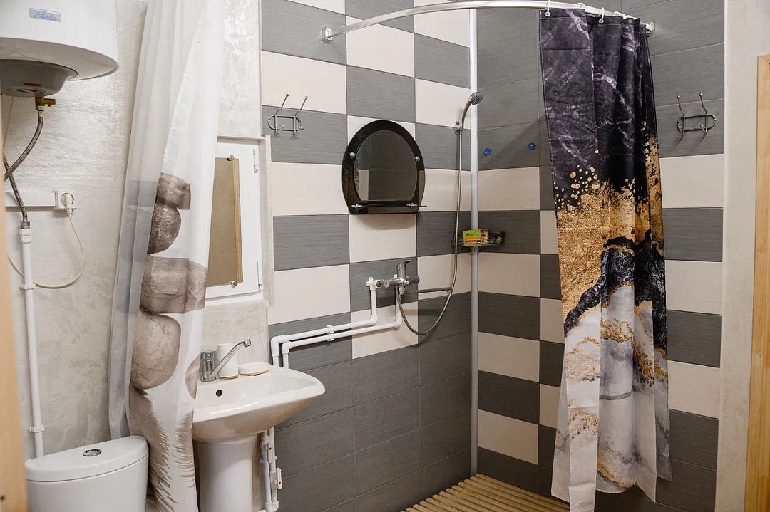 Шланг в душе брызгает в разные стороны. Так же отсутствовали шторы на окнах. Форточки открываются не везде. Пыль на поверхностях, подоконниках, карнизах тоже не вытирали.