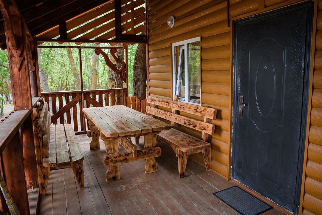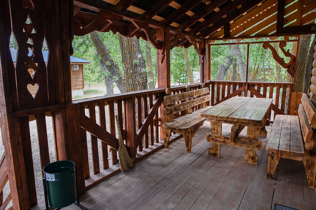 На территории в 0,5 Га расположены 4 комфортабельных домика. Дома оснащены всем необходимым для проживания и хорошего времяпрепровождения. У каждого дома имеется большая веранда со столом и лавочками, что позволяет до самых холодов сидеть на улице и дышать воздухом. Для рыбаков на воду спущен понтон, с которого удобно рыбачить в любое время года. Территория базы освещается и охраняется круглосуточно.