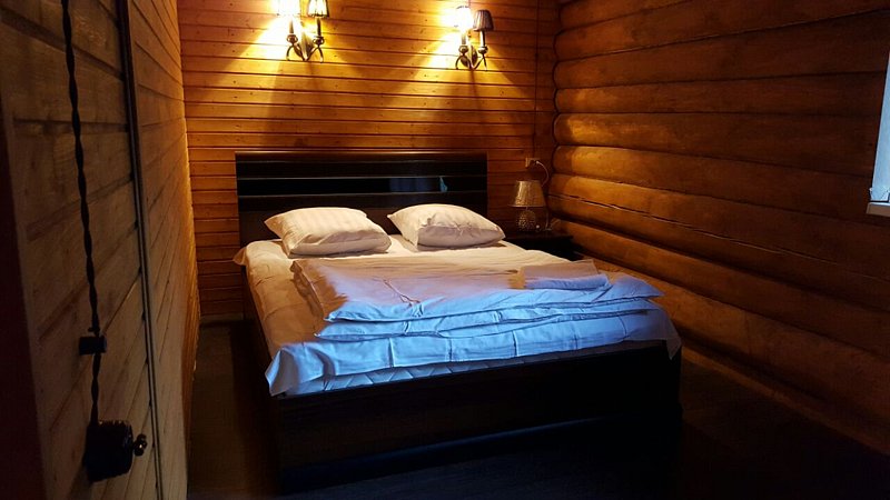 НедостаткиБыли два дня и на протяжении этого времени дико хотелось уехать оттуда.В домике плохая сантехника,уже все ржавое,гниет,по телефону сказали что турбаза новая и все очень классно.Санузел грязный,в душе в сливе забиты волосы и прочее,это очень неприятно,особенно за такие деньги.Бассейн без подогрева,либо его просто не включают.Территория маленькая,на фото выглядит в разы больше.Холодильник на улице,его никак нельзя закрыть,поэтому бери что хочешь кто хочет.Посуды нет,какого то шкафа или комода для одежды нет,поэтому все лежит на полу,на кухне есть чайник,только розетка для него там не предусмотрена,поэтому чтобы погреть воду,нужно поставить в спальне стул,на стул чайник и греешь,иначе не дотянется.Во время нашего отдыха,на территориии отмечалась свадьба.Никто это не координирует,люди ходят где хотят,делают че хотят и тот факт что кто то приехал отдохнуть и заплатил за это денежки,никого вообще не волнует.Ладно,что свадьба игралась просто в метре от домика,когда ты из него выходишь,люди стоят буквально за твоей дверью,сидят в твоей беседке,оставляют свои пустые стаканы и вся остальная красота.Полное разочарование,впервые такое впечатление от турбазы,хотя посетили их немало.