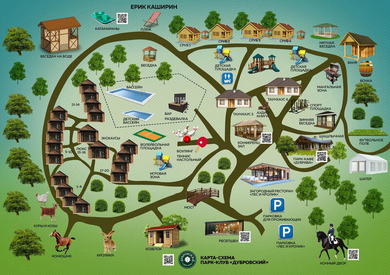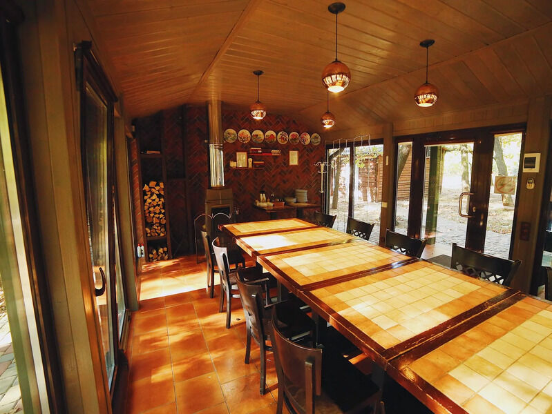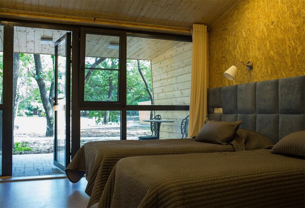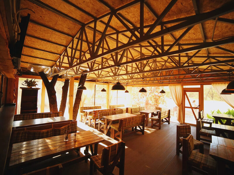Все жилые дома изготовлены из натуральных материалов и оснащены современными технологиями (климат-контроль, телевизор, Wi-Fi). На территории комплекса находится кафе Дубрава, сотрудники которого рады накормить посетителей домашней едой. А интерьер в деревенском стиле погрузит в атмосферу тепла и уюта.