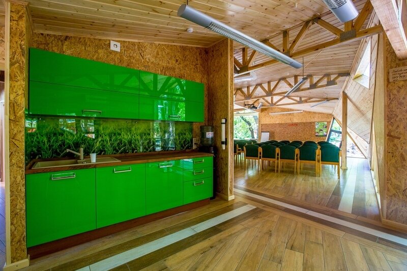 НедостаткиЭко-хаусом я бы не назвал дома, изнутри облицованы OSB. Нет скидок, высоковаты цены за проживание.