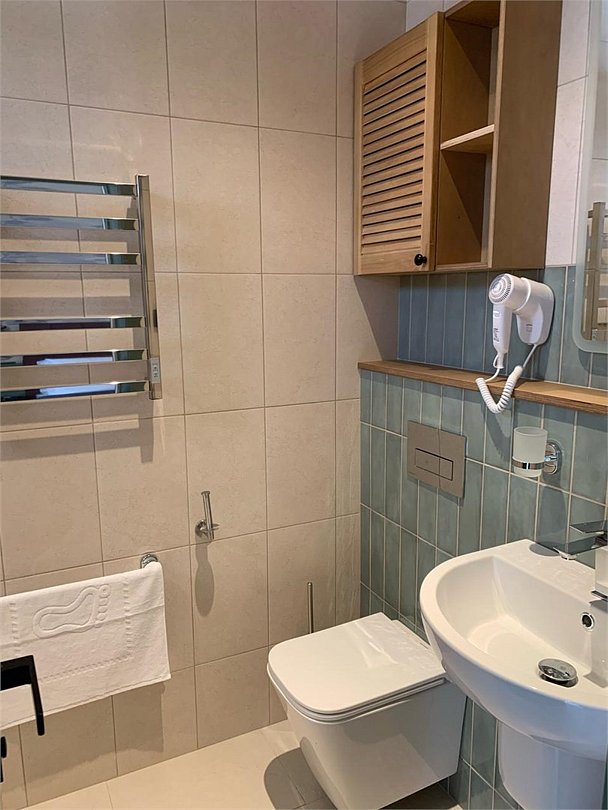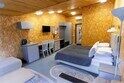 Интерьер : холодильник, чайник, кухонная утварь, телевизор, фен, кондиционер, телевизор, шкаф для одежды, душевая, набор полотенец, подогрев пола.