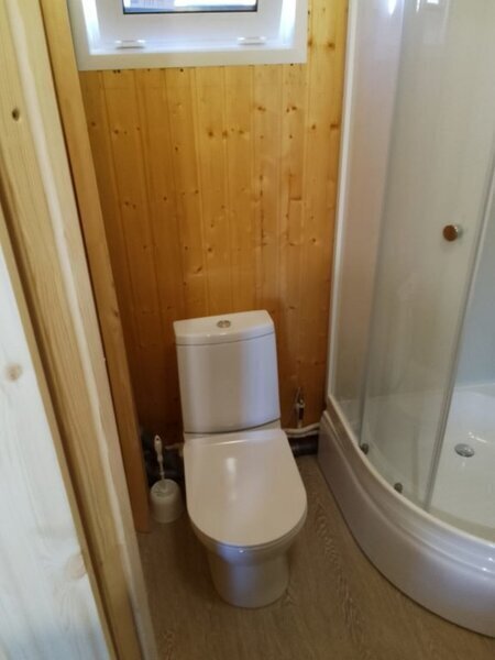 Для приятного времяпрепровождения есть все необходимое: телевизор, душевая кабина, холодное и горячее водоснабжение, система кондиционирования, а панорамные окна завешаны шторами блэкаут.